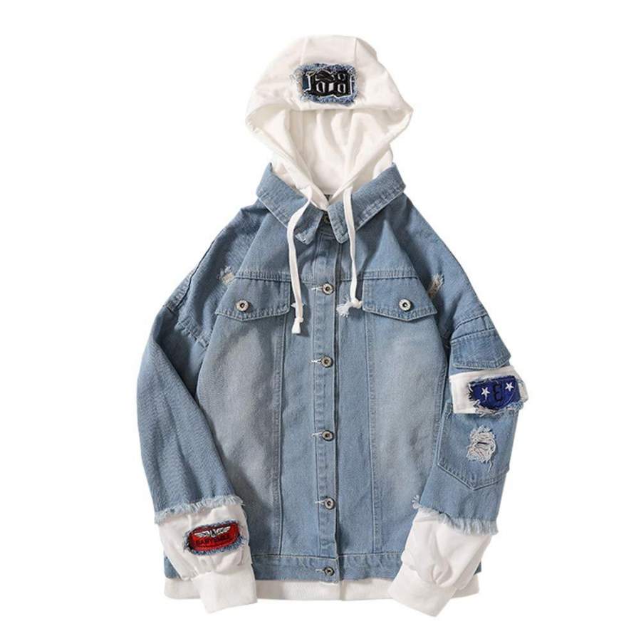 Anime One Piece Denim Bomber Jacket One Piece D Luffy Hooded Jeans Sweatshirt Unisex