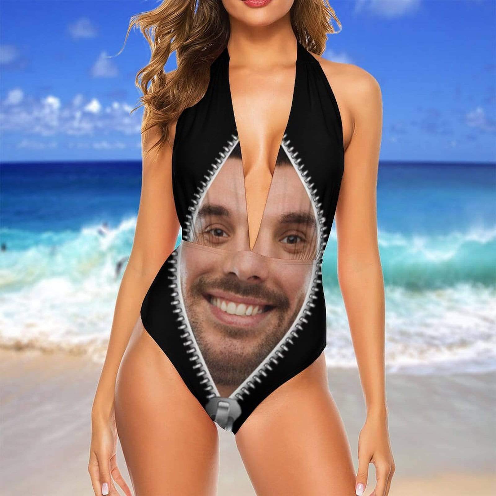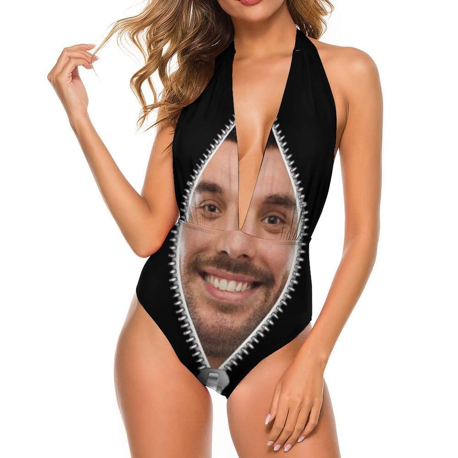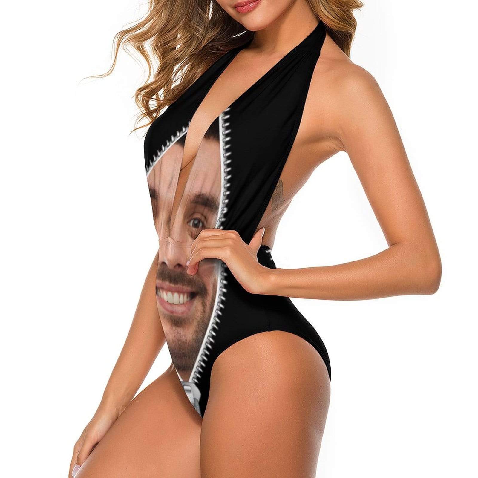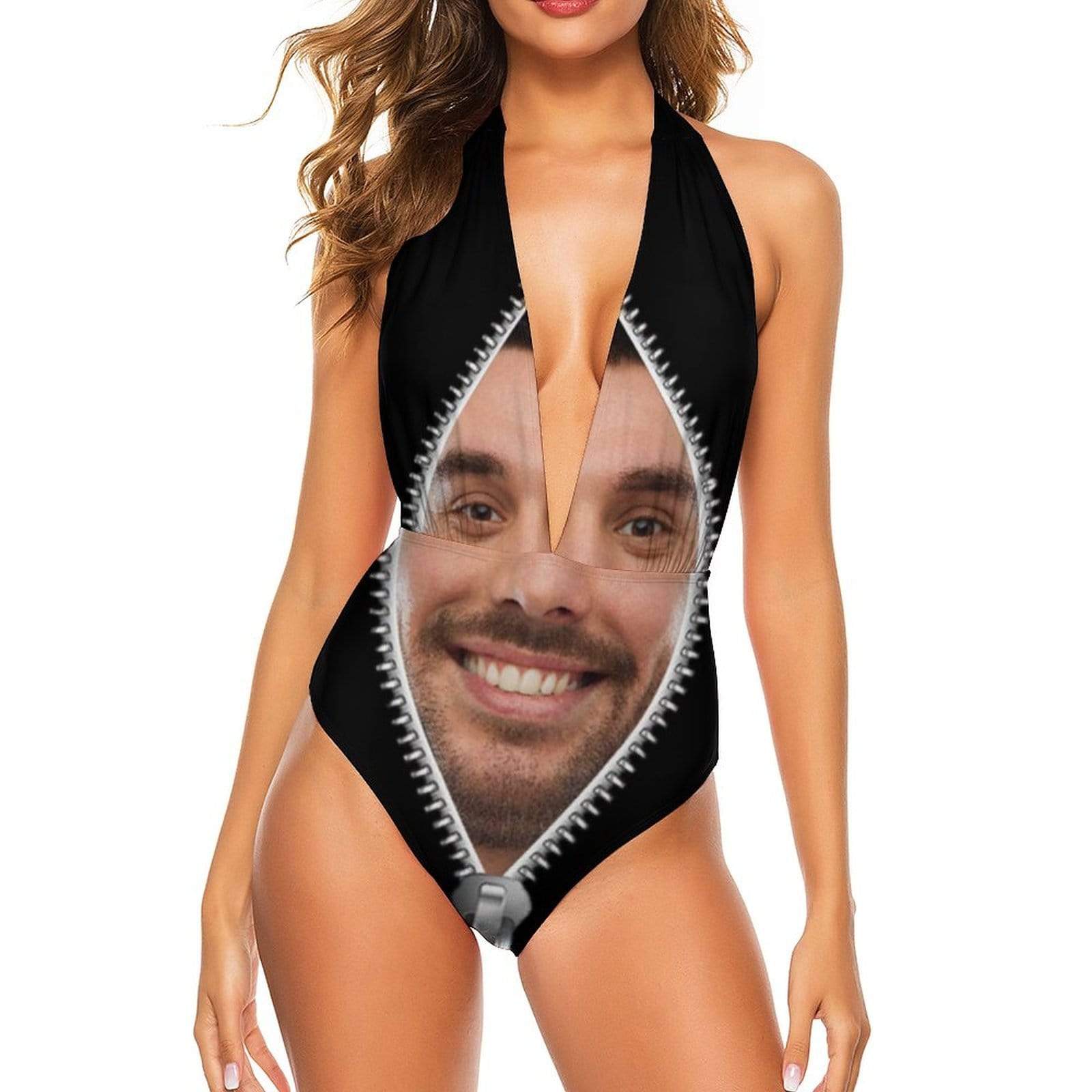 Custom Face Zipper Women’S Backless V-Neck One Piece Swimsuit