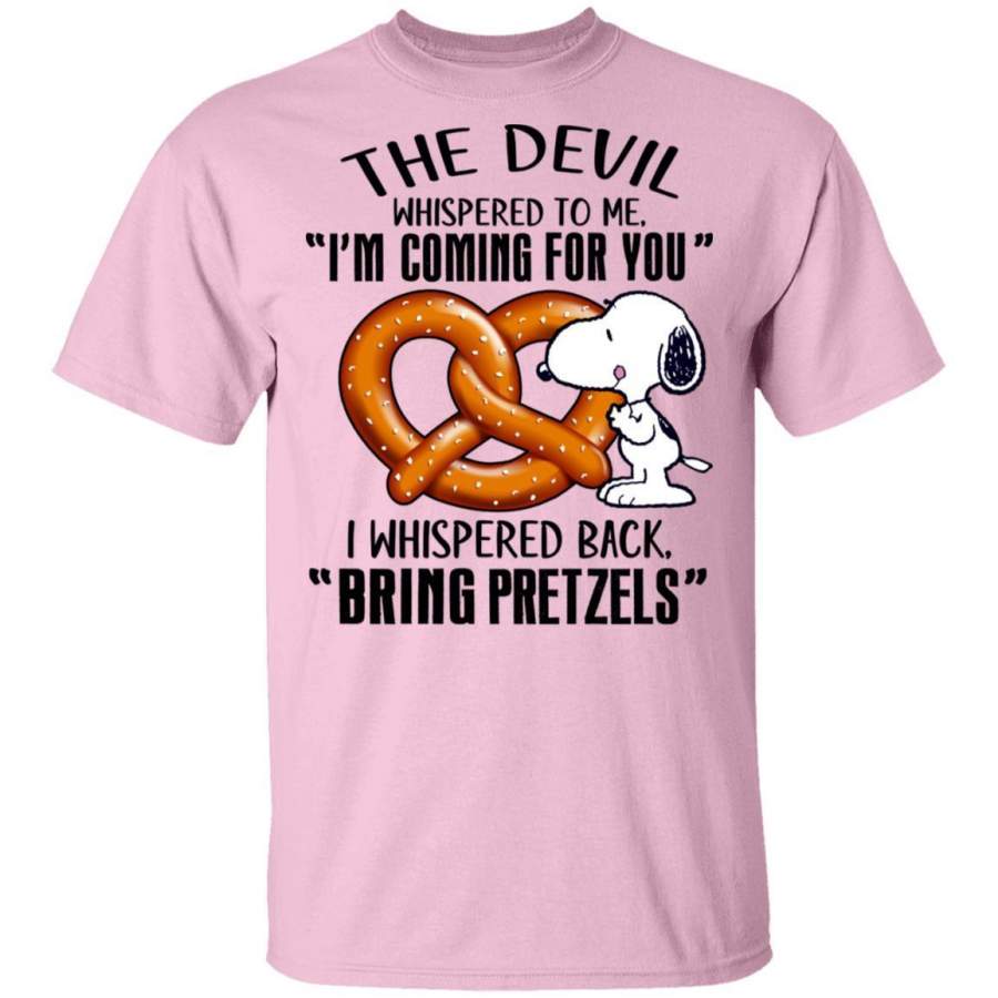 Devil Whispered I’m Coming For You I Whispered Back Bring Pretzels Snoopy T-shirt VA04