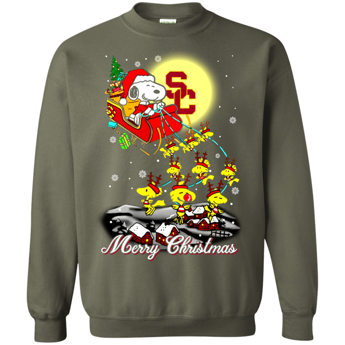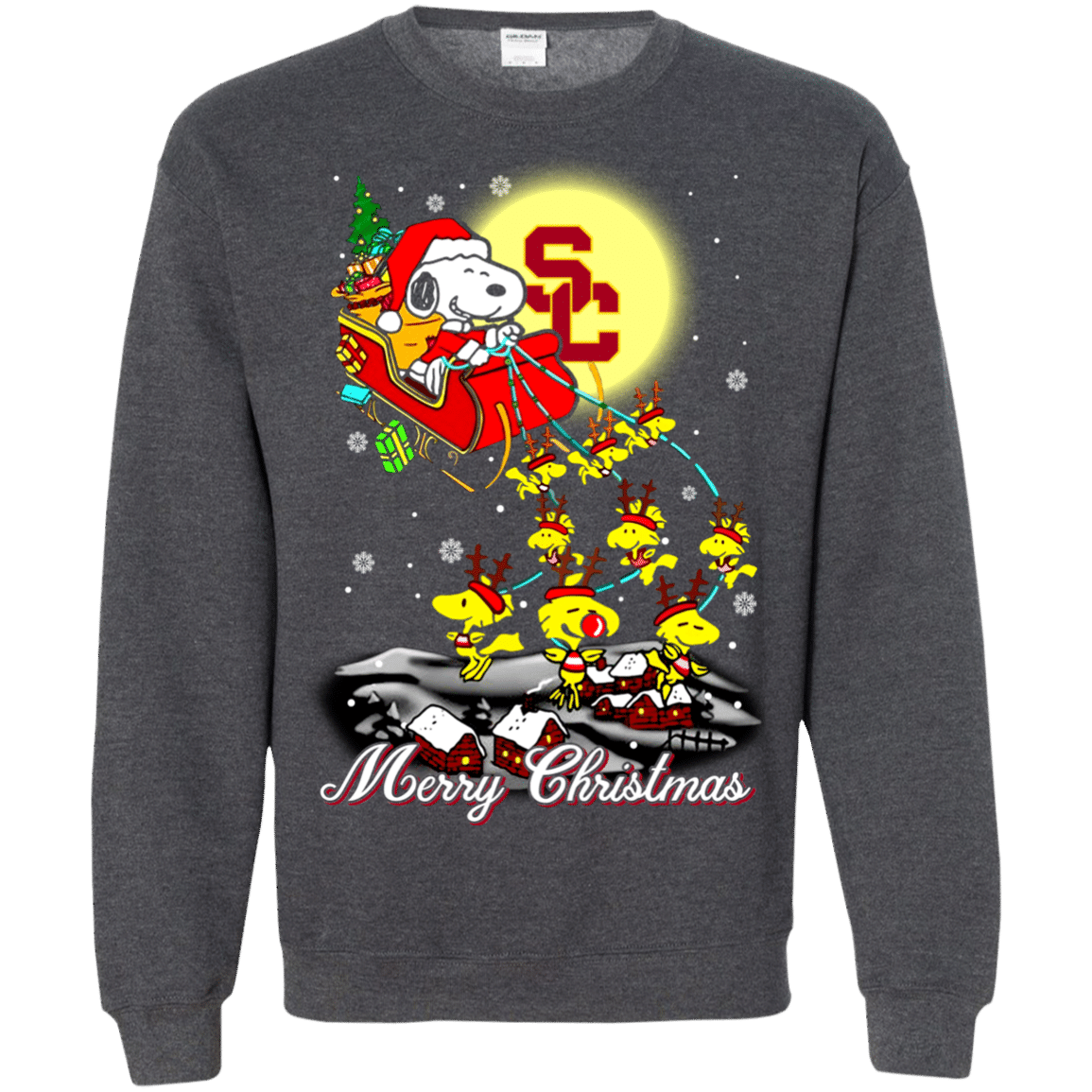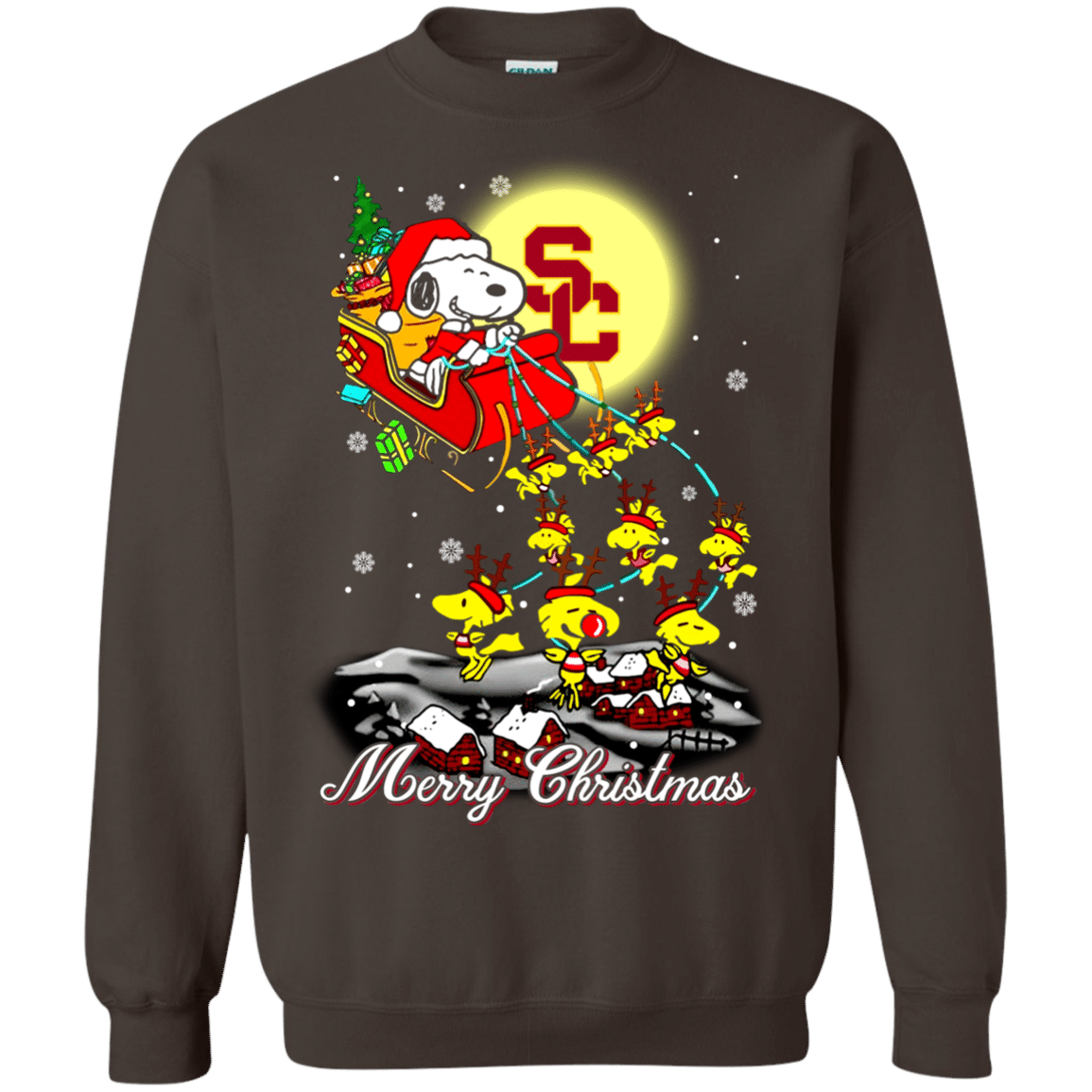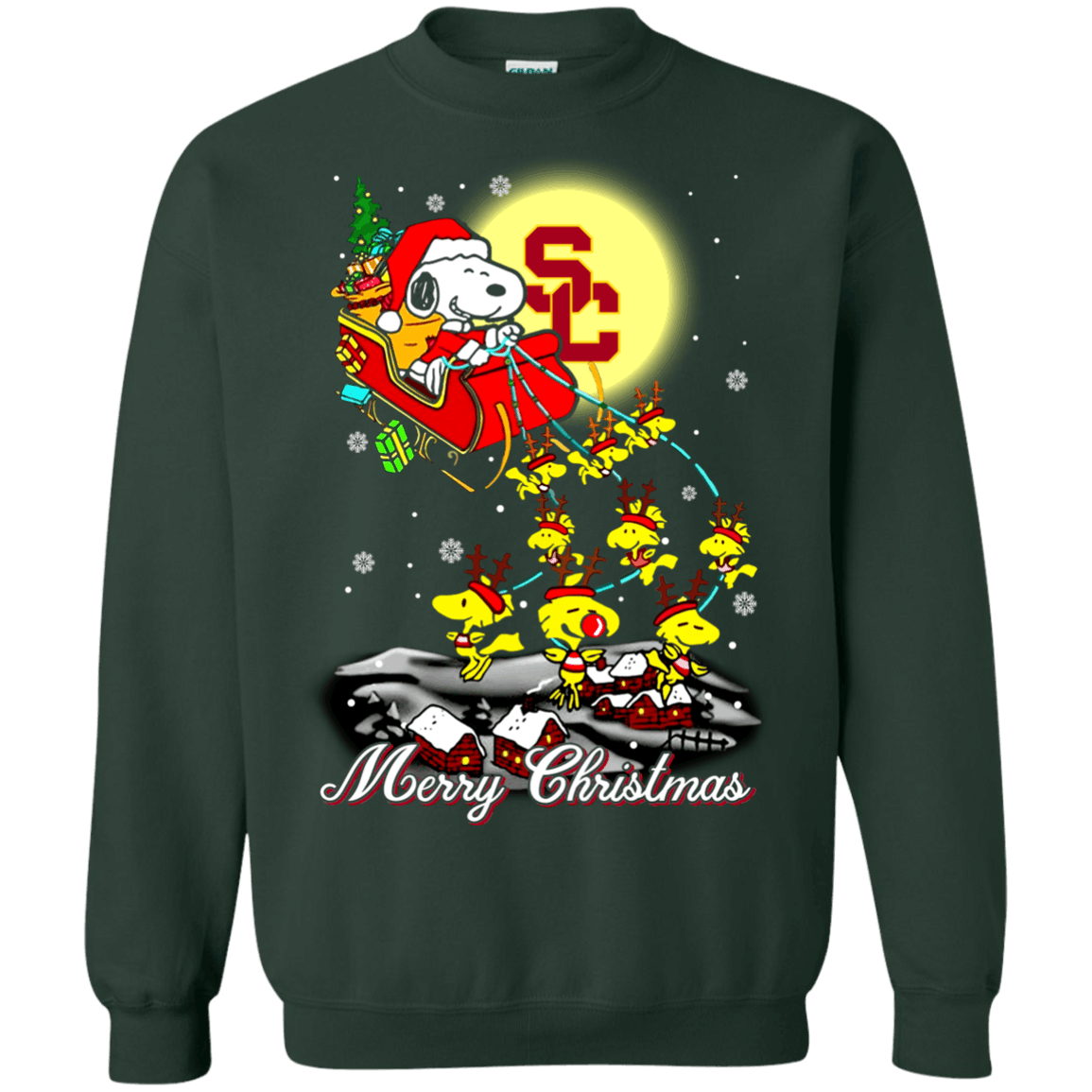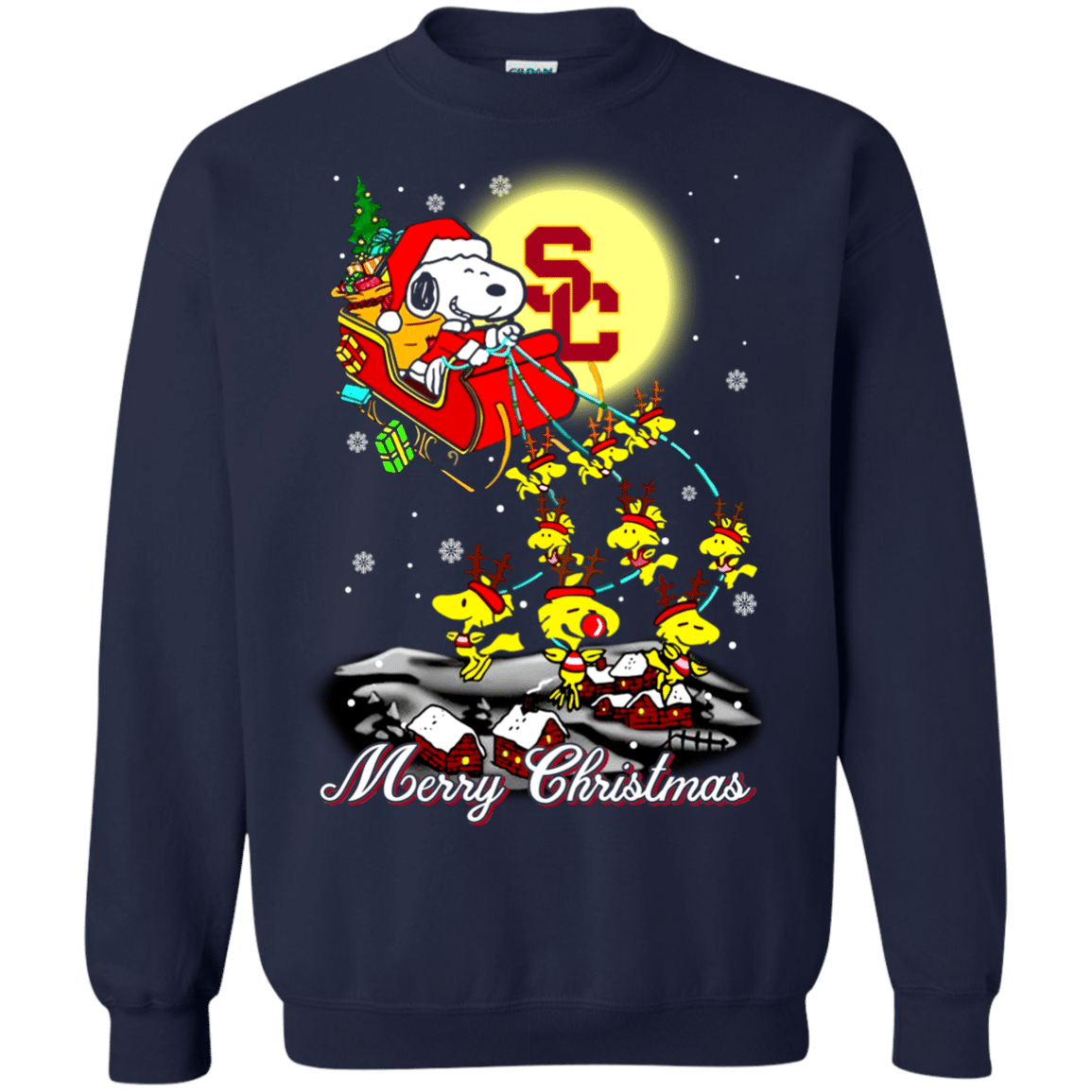 Fantastic USC Trojans Ugly Christmas Sweaters Santa Claus With Sleigh And Snoopy Sweatshirts