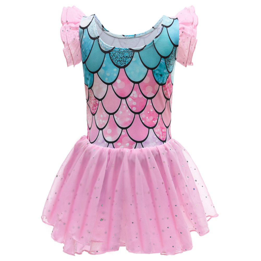 Girls Swimsuit Butterfly Short Sleeve Swimming Print Waist Mesh Dress Children Princess Mermaid Dress One Piece Baby Swimwear alx