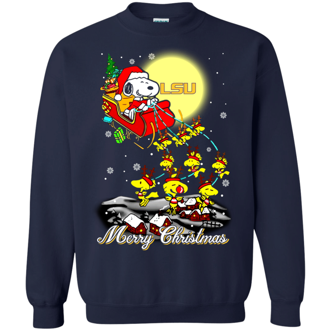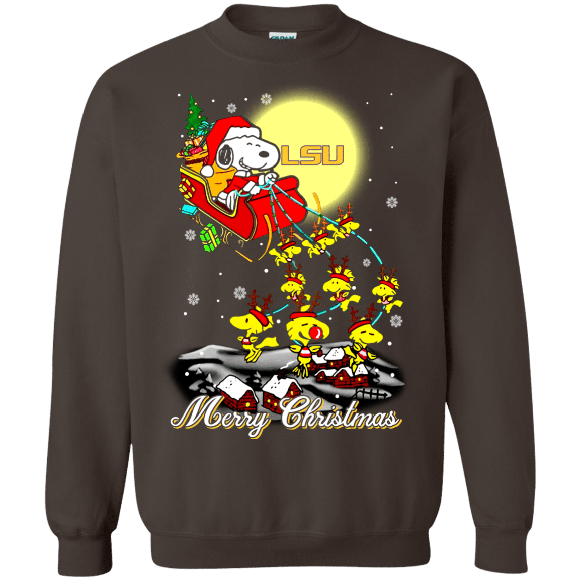 Greate LSU Tigers Ugly Christmas Sweaters Santa Claus With Sleigh And Snoopy Sweatshirts