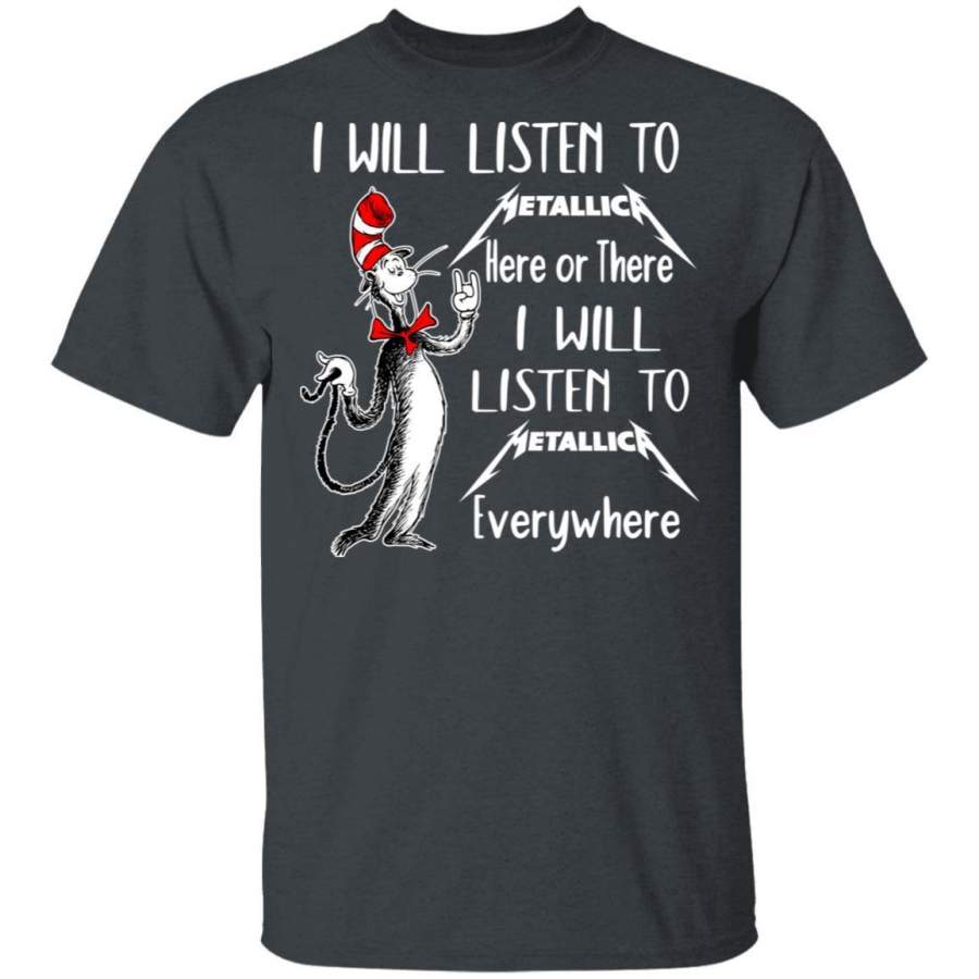 I Will Listen To Metallica Here Or There T-shirt Cat In The Hat Tee VA12