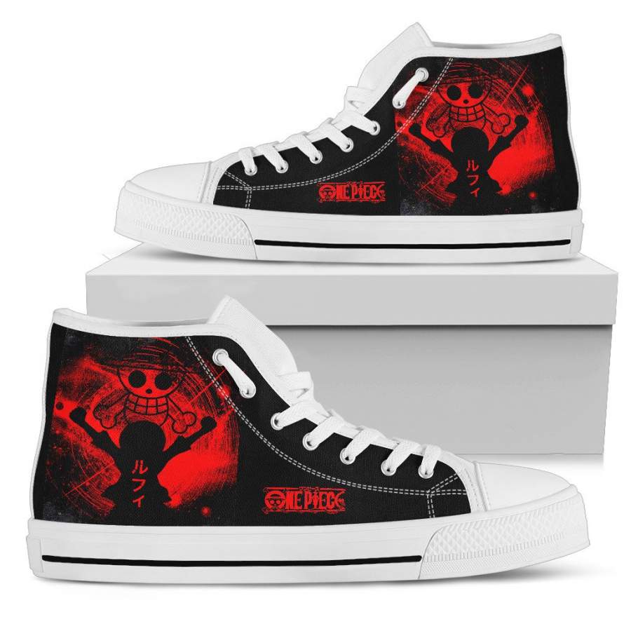 Luffy One Piece High Top Shoes Red design for fan T11012
