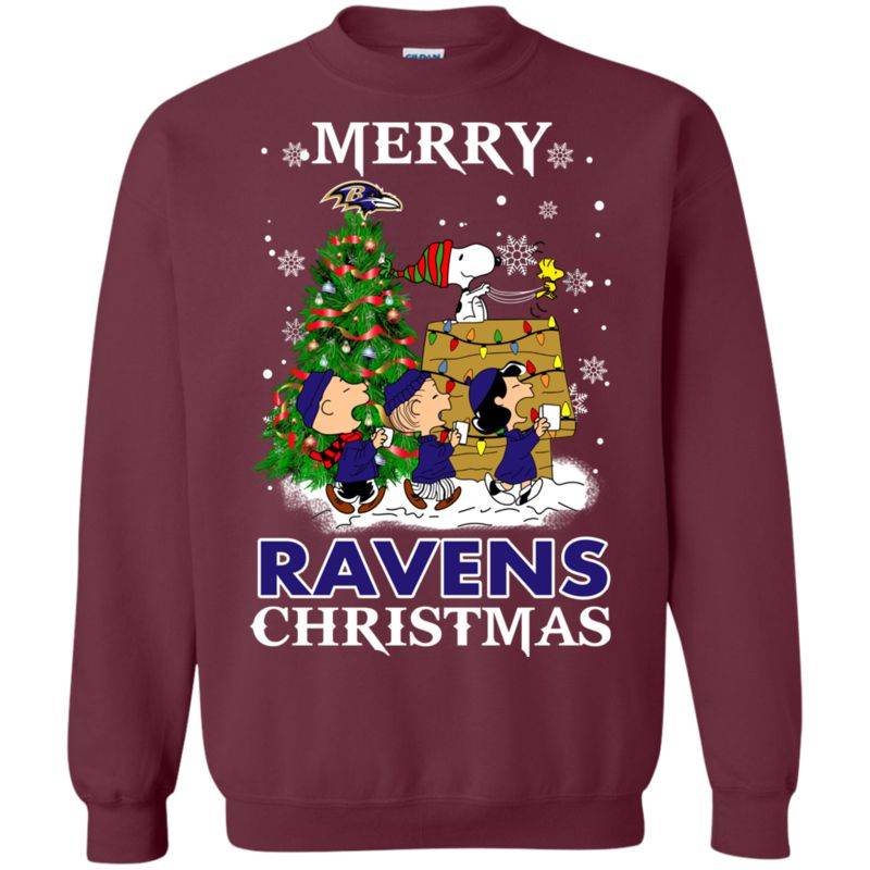 Merry Baltimore Ravens Christmas Snoopy Ugly Sweater Style Shirts