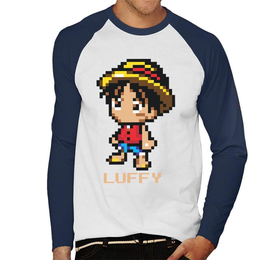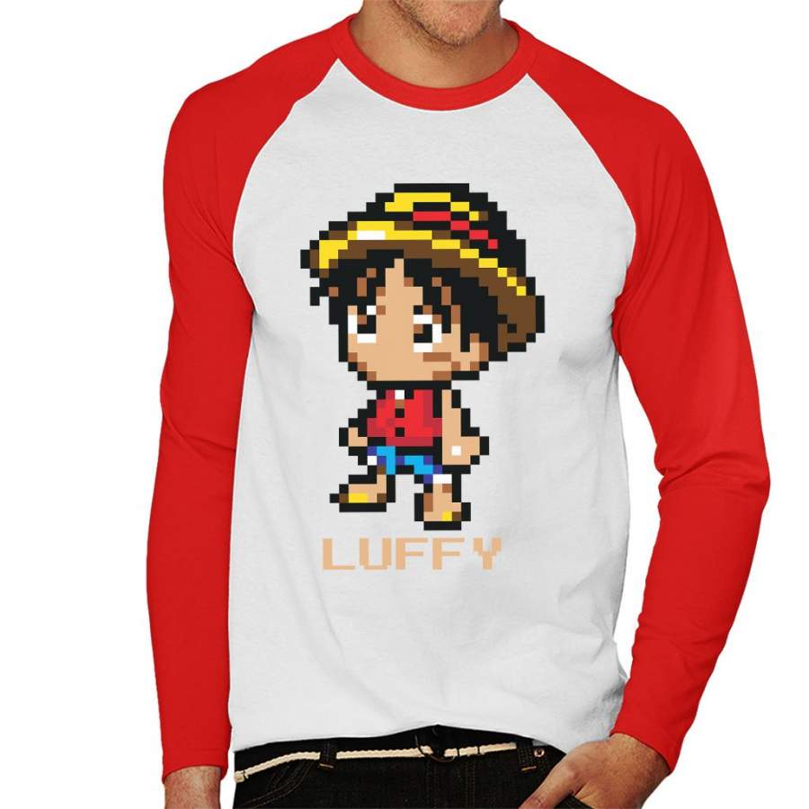 Monkey D Luffy Pixel Character One Piece Men’s Baseball Long Sleeved T-shirt