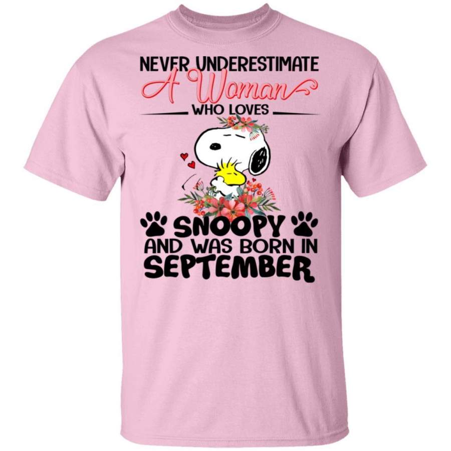 Never Underestimate A September Woman Loves Snoopy T-shirt MT01