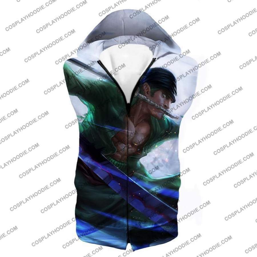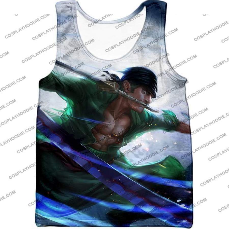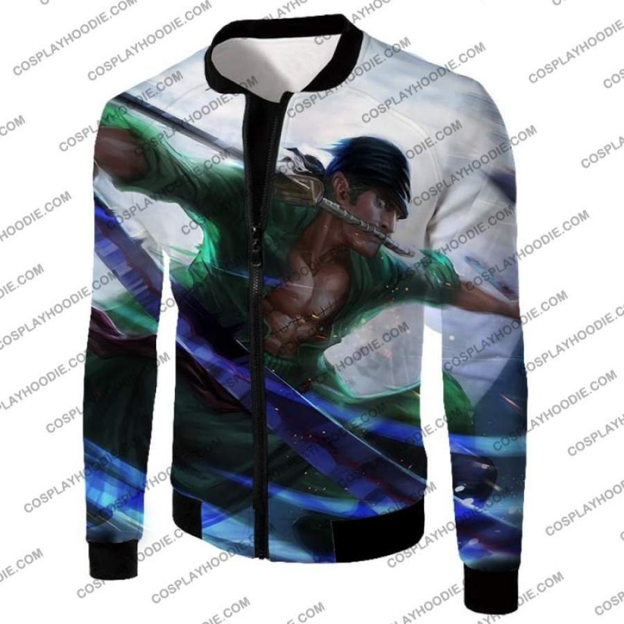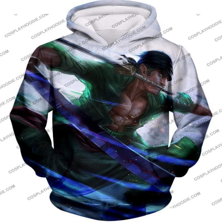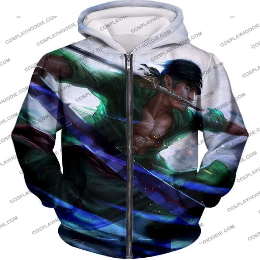 One Piece Awesome Swordsman Roronoa Zoro Action White T-shirt OP005