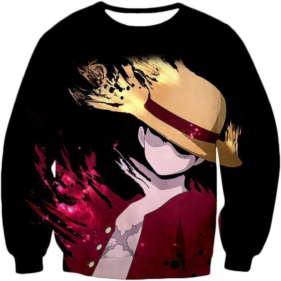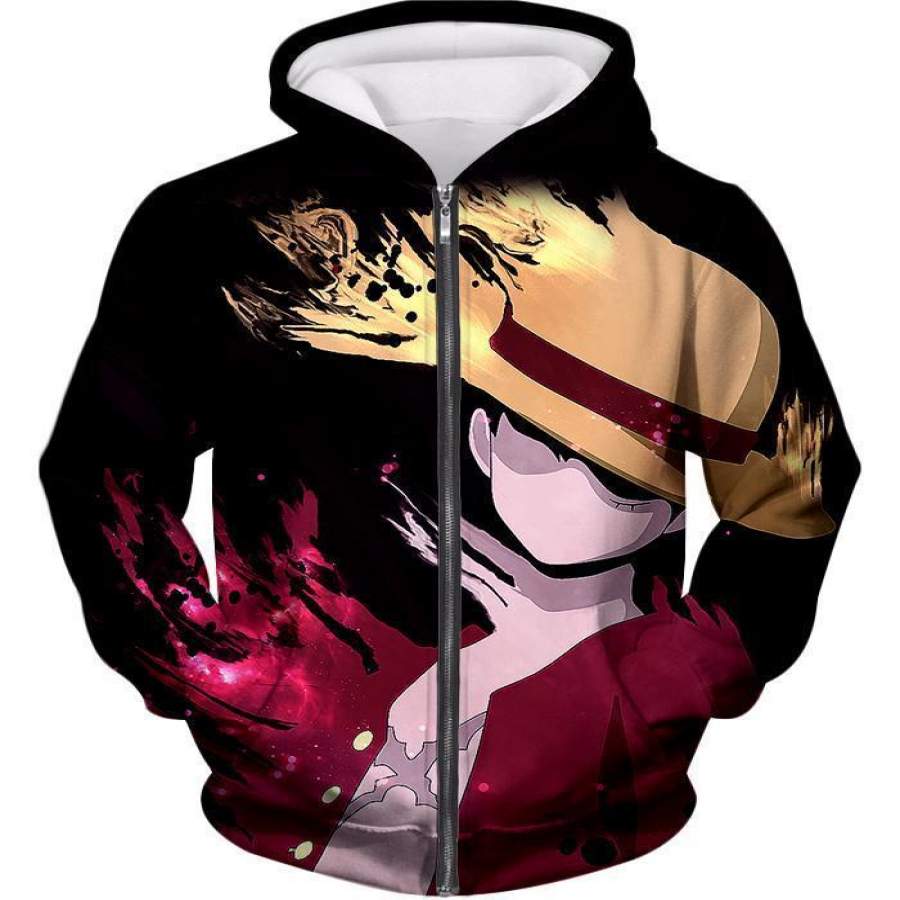 One Piece Hoodie – One Piece Super Pirate Captain Straw Hat Luffy Black Hoodie
