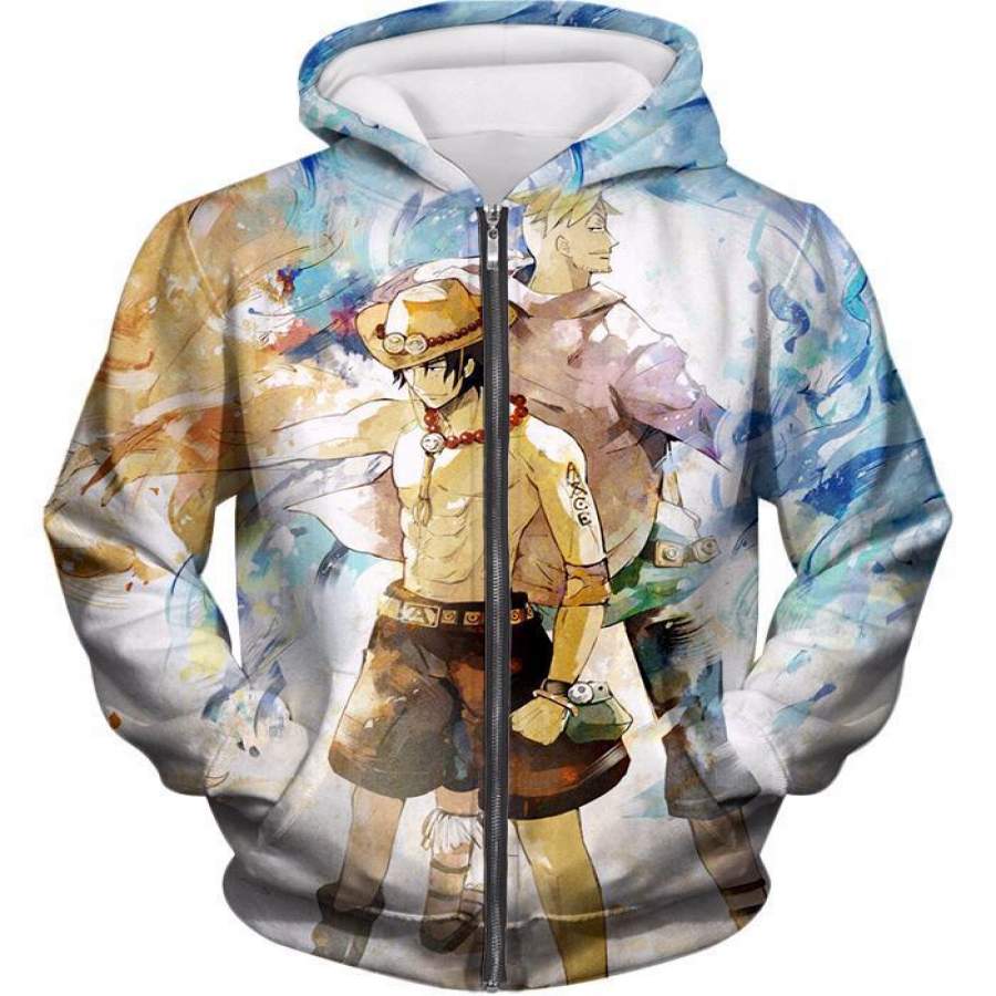 One Piece Hoodie – One Piece Whitebeard Pirates Fire Fist Ace and Marco the Phoenix Action Hoodie