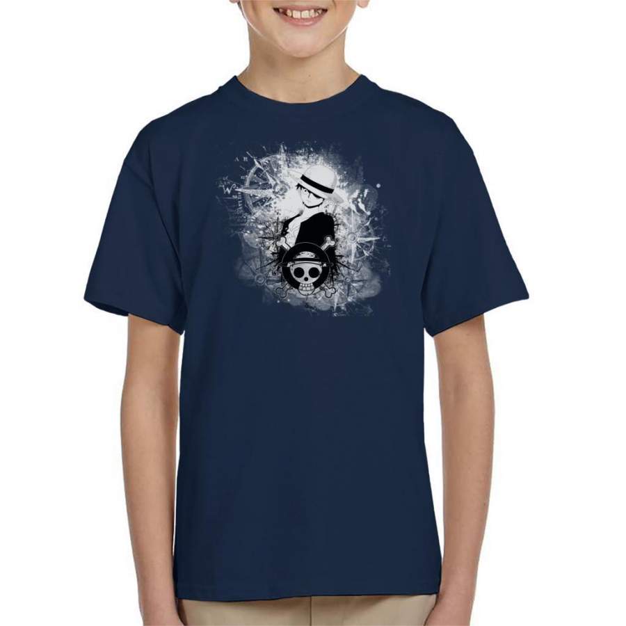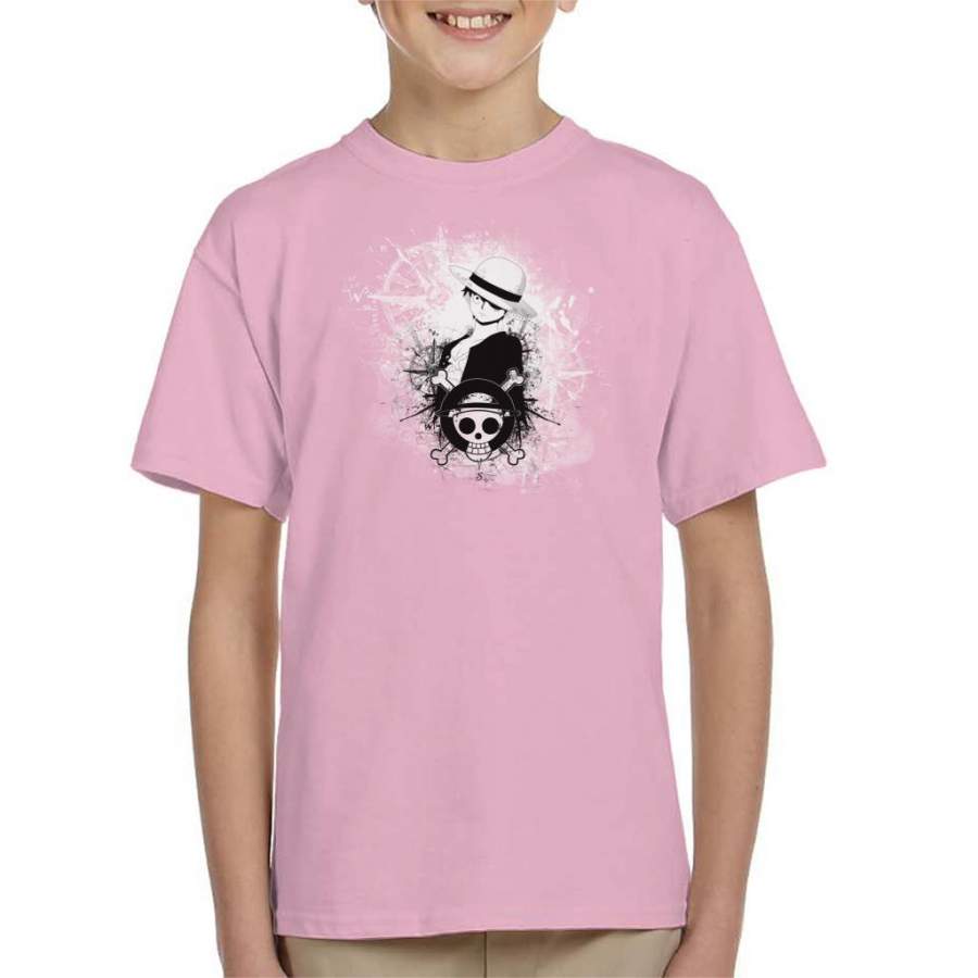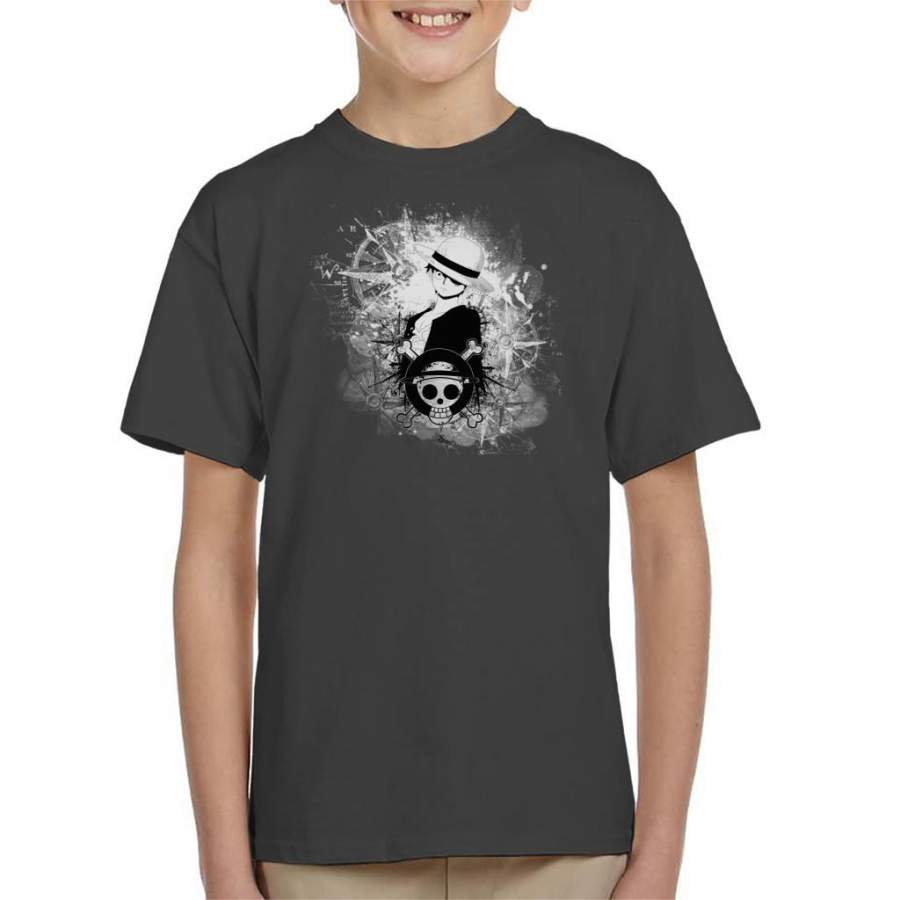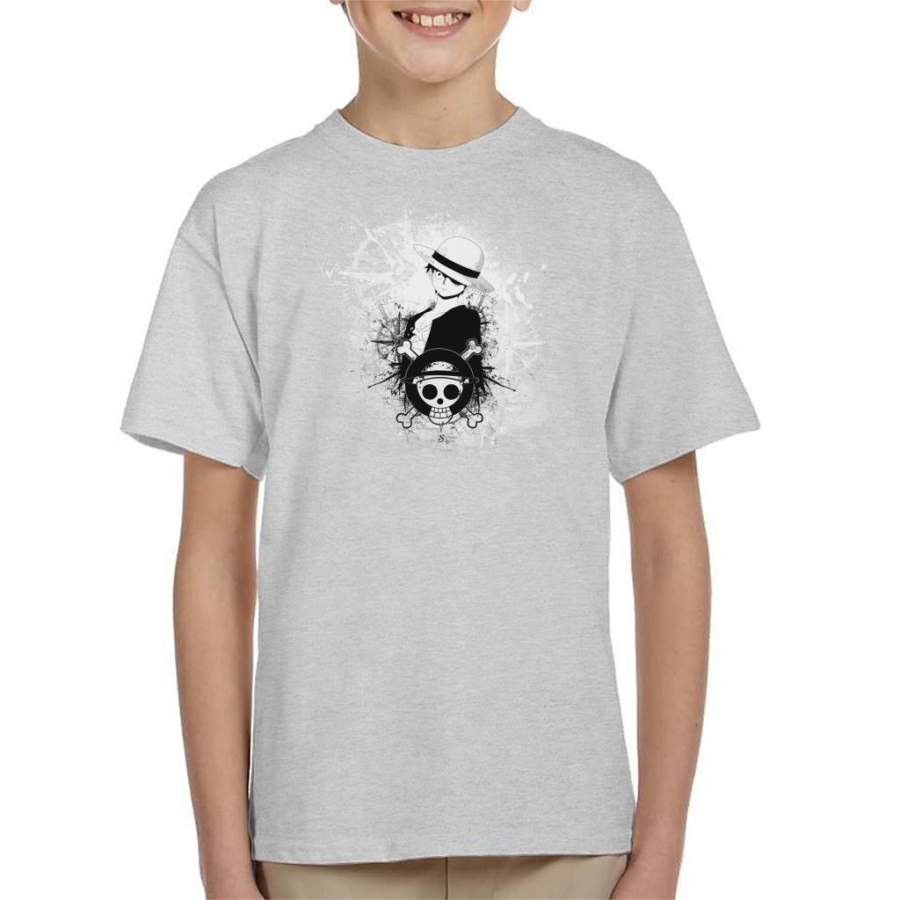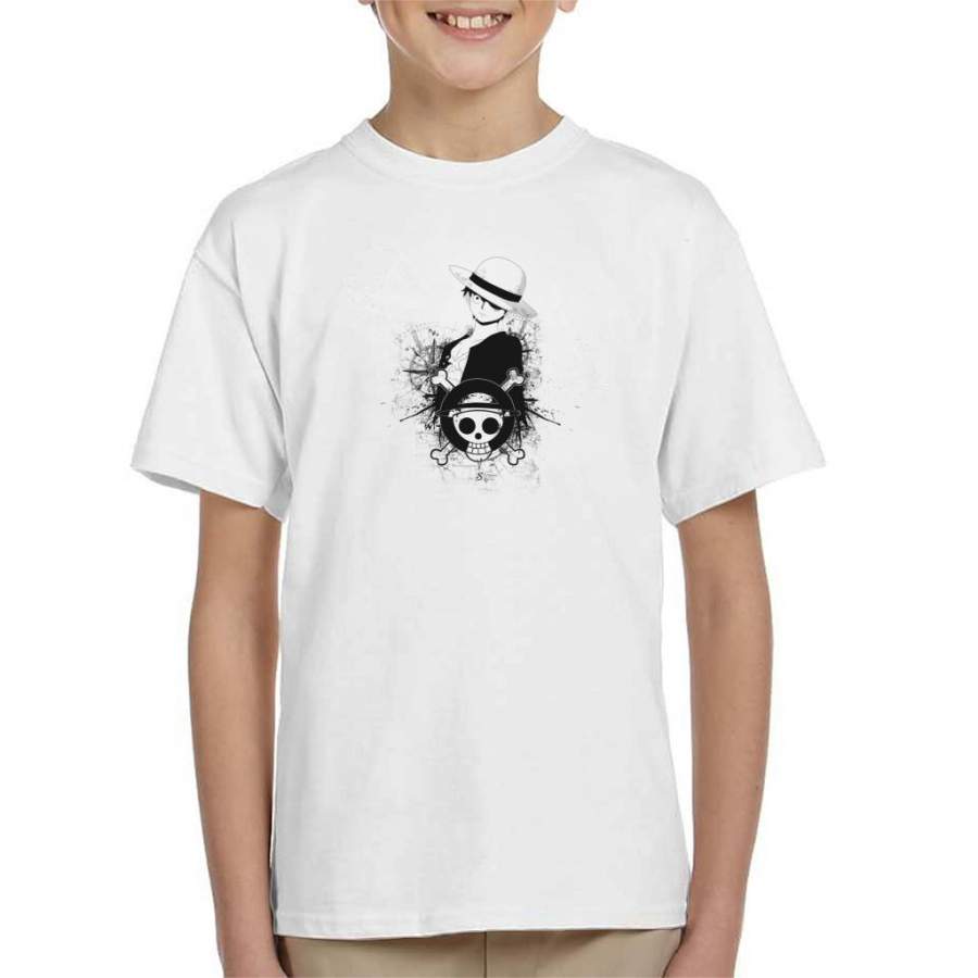One Piece Luffy Black and White Silhouette Montage Kid’s T-shirt
