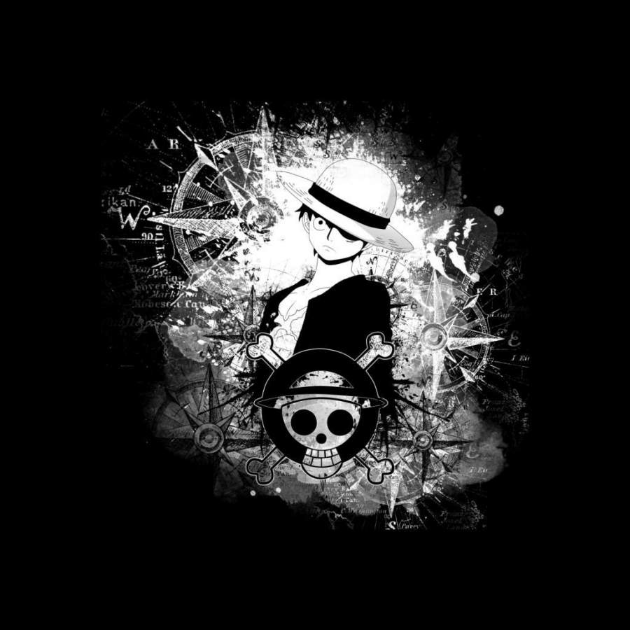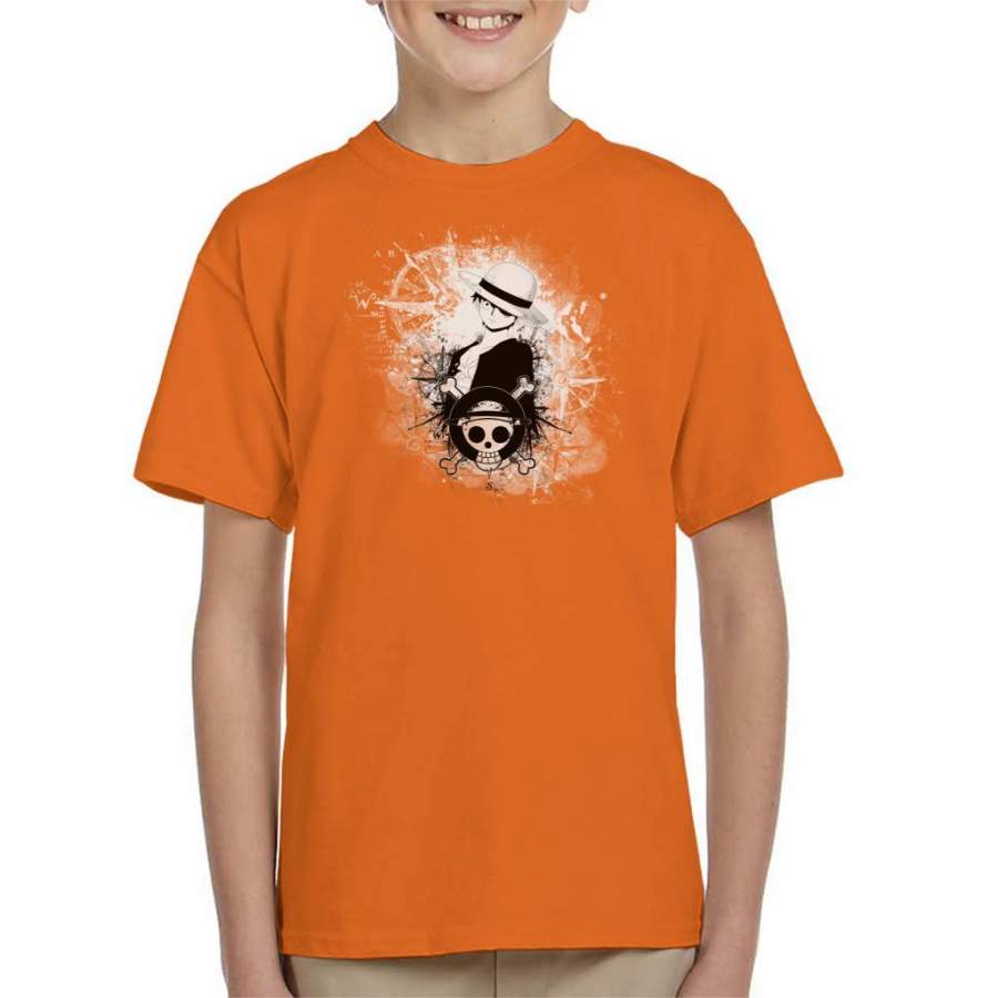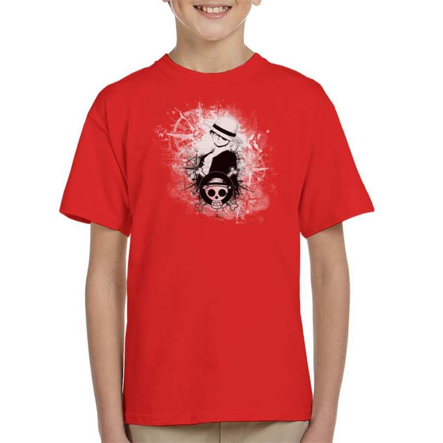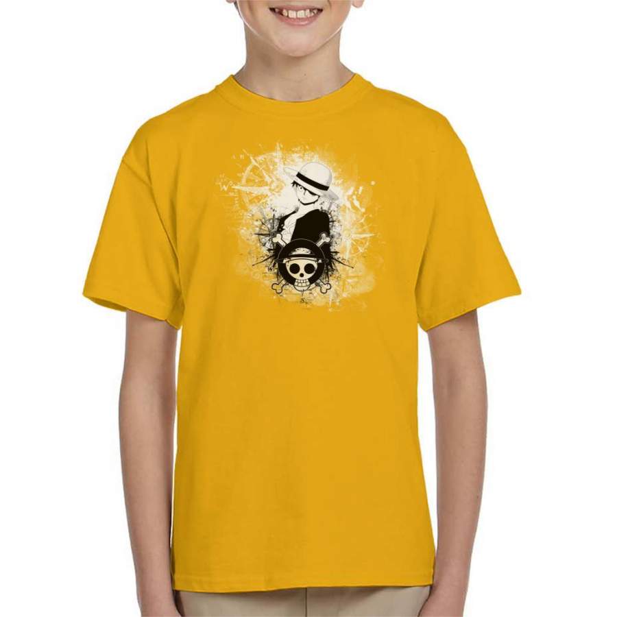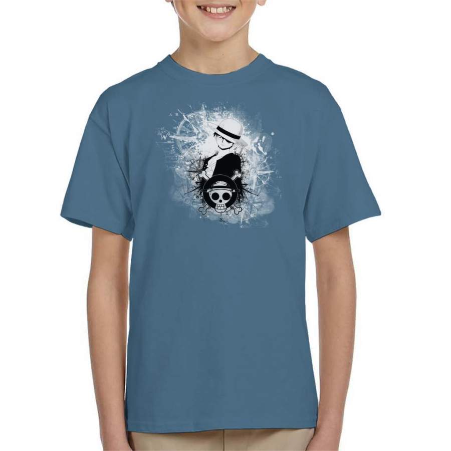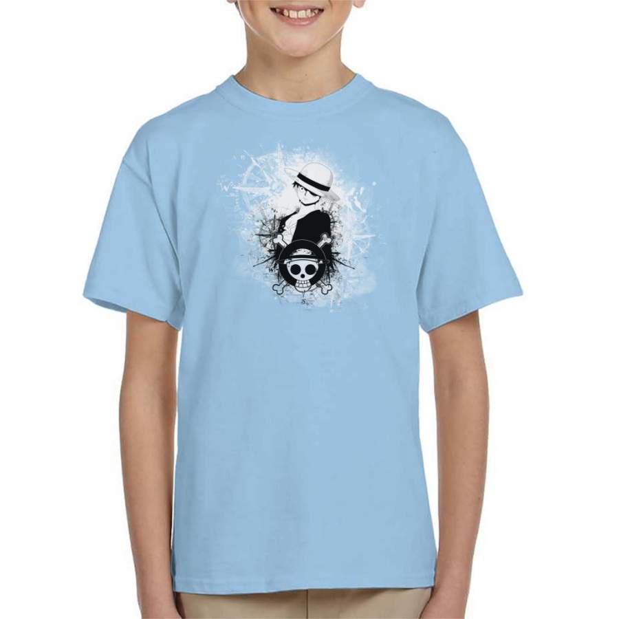 One Piece Luffy Black and White Silhouette Montage Kid’s T-shirt