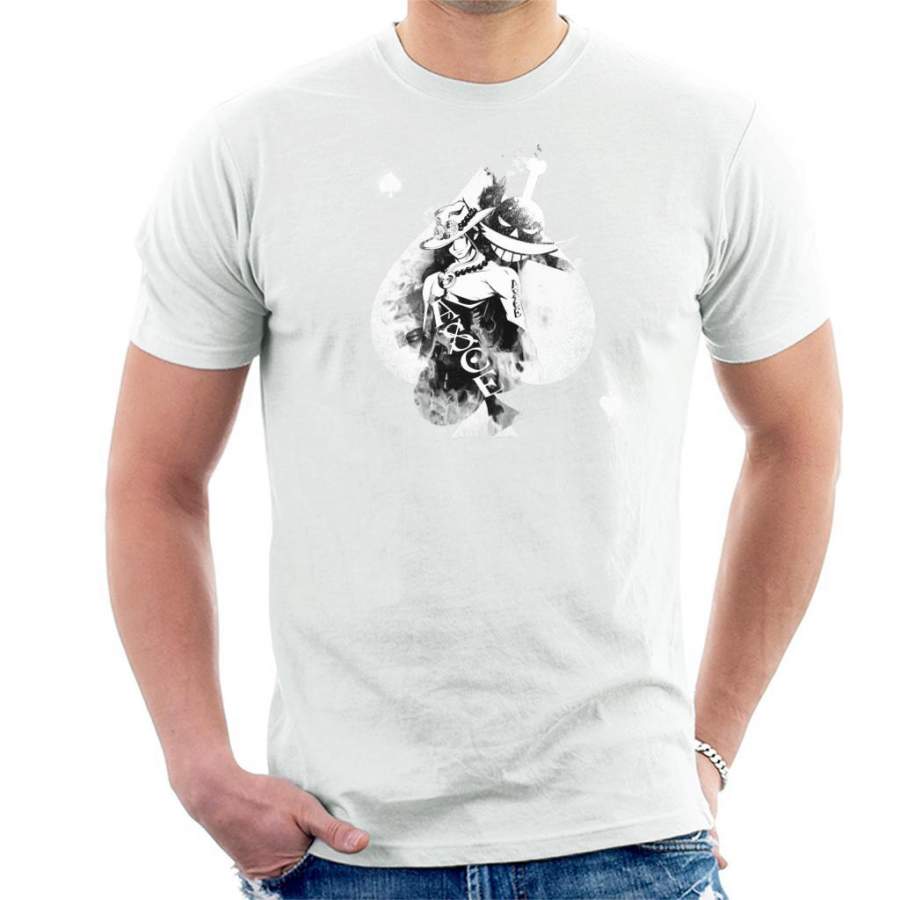 One Piece Portgas Ace Montage White Fade Men’s T-shirt