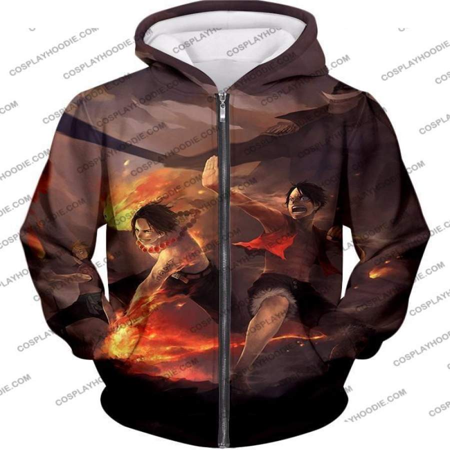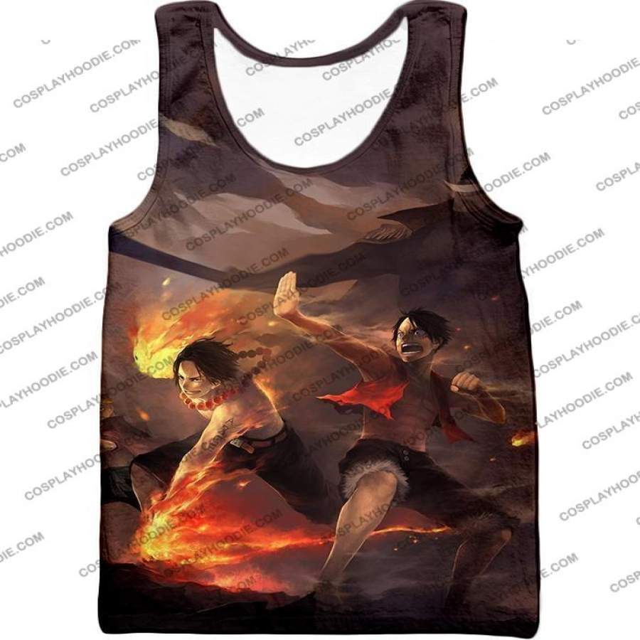 One Piece Powerful Brothers Bond Luffy and Ace Cool Battle Action T-shirt OP027