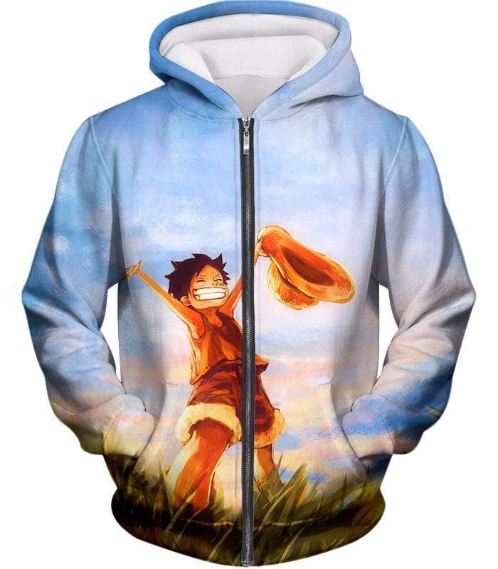 One Piece Super Cool One Piece Pirate Kid Luffy Blue Hoodie