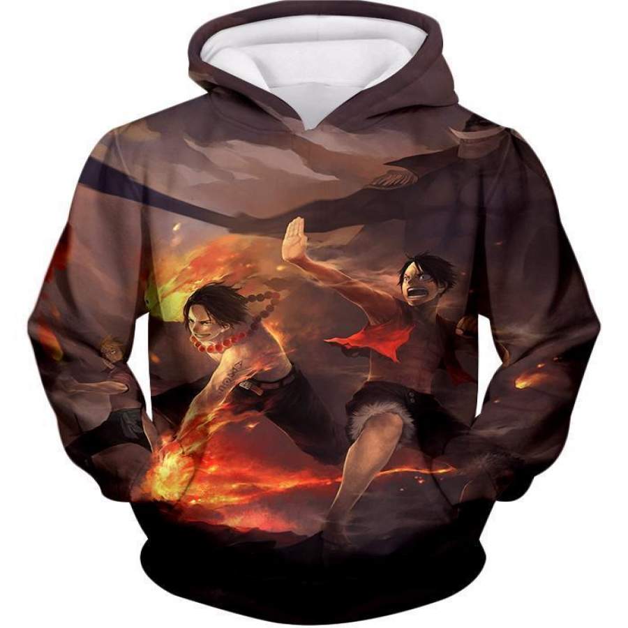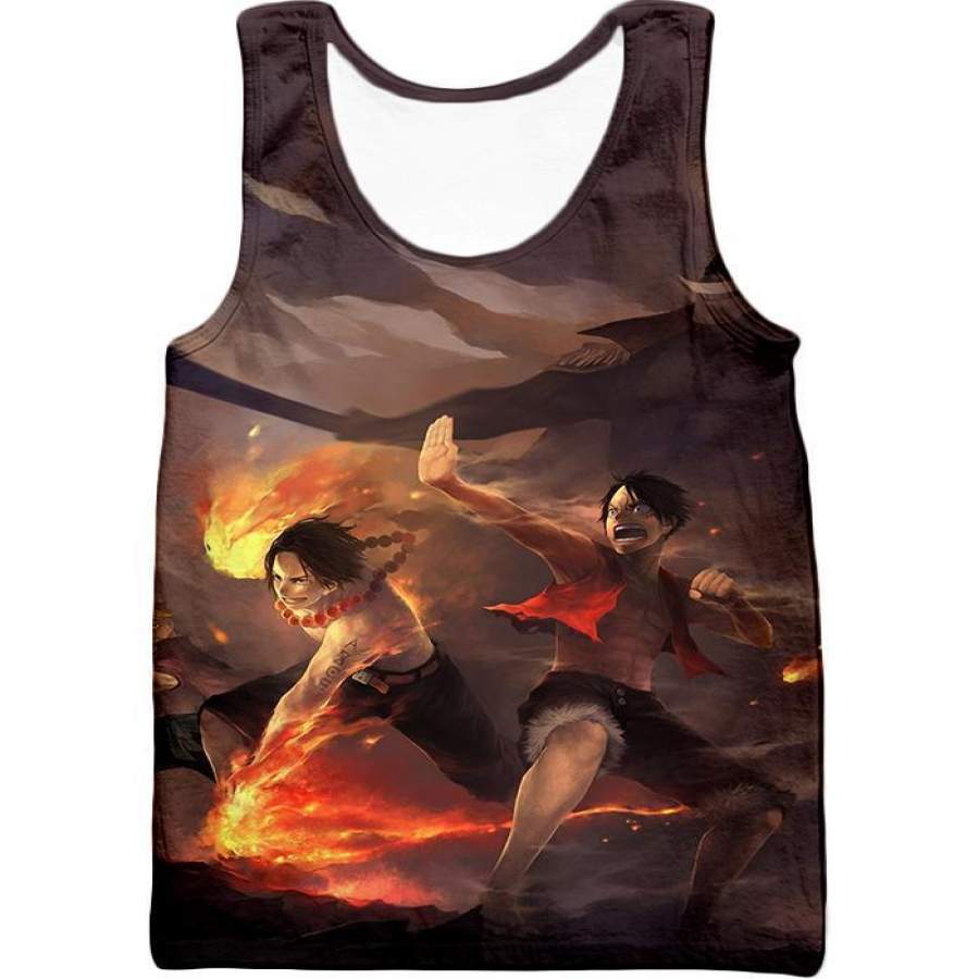 One Piece T-shirt – One Piece Powerful Brothers Bond Luffy and Ace Battle Action T-shirt