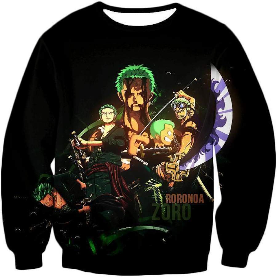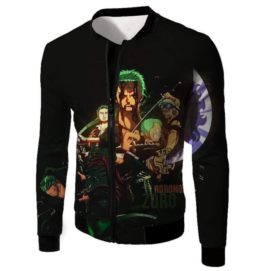 One Piece Zip Up Hoodie – One Piece Swordsman Roronoa Zoro Promo Black Zip Up Hoodie
