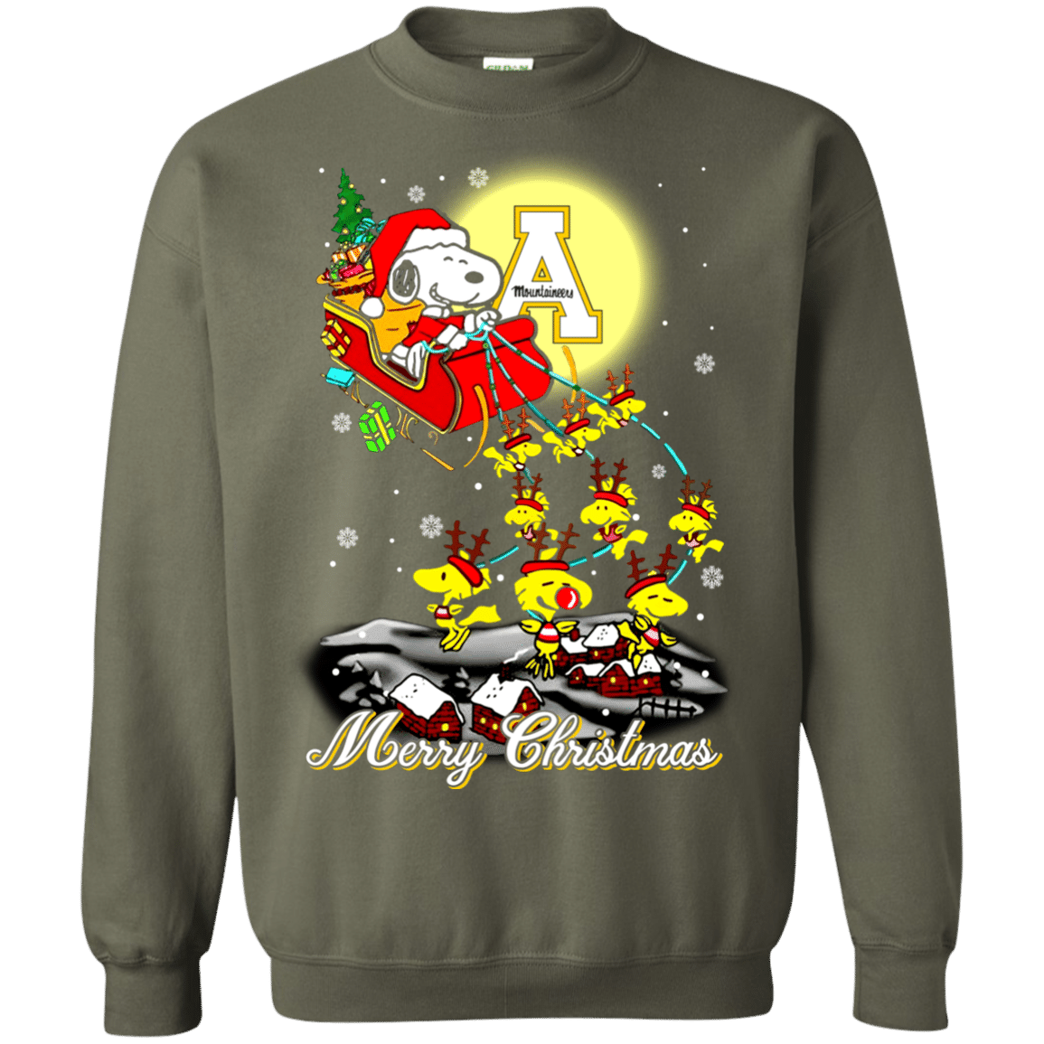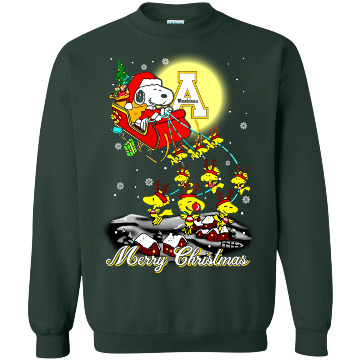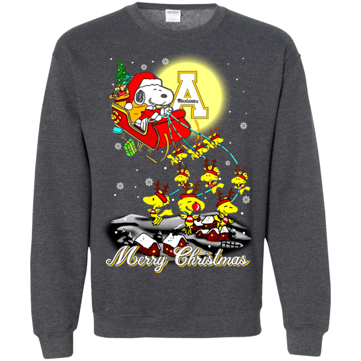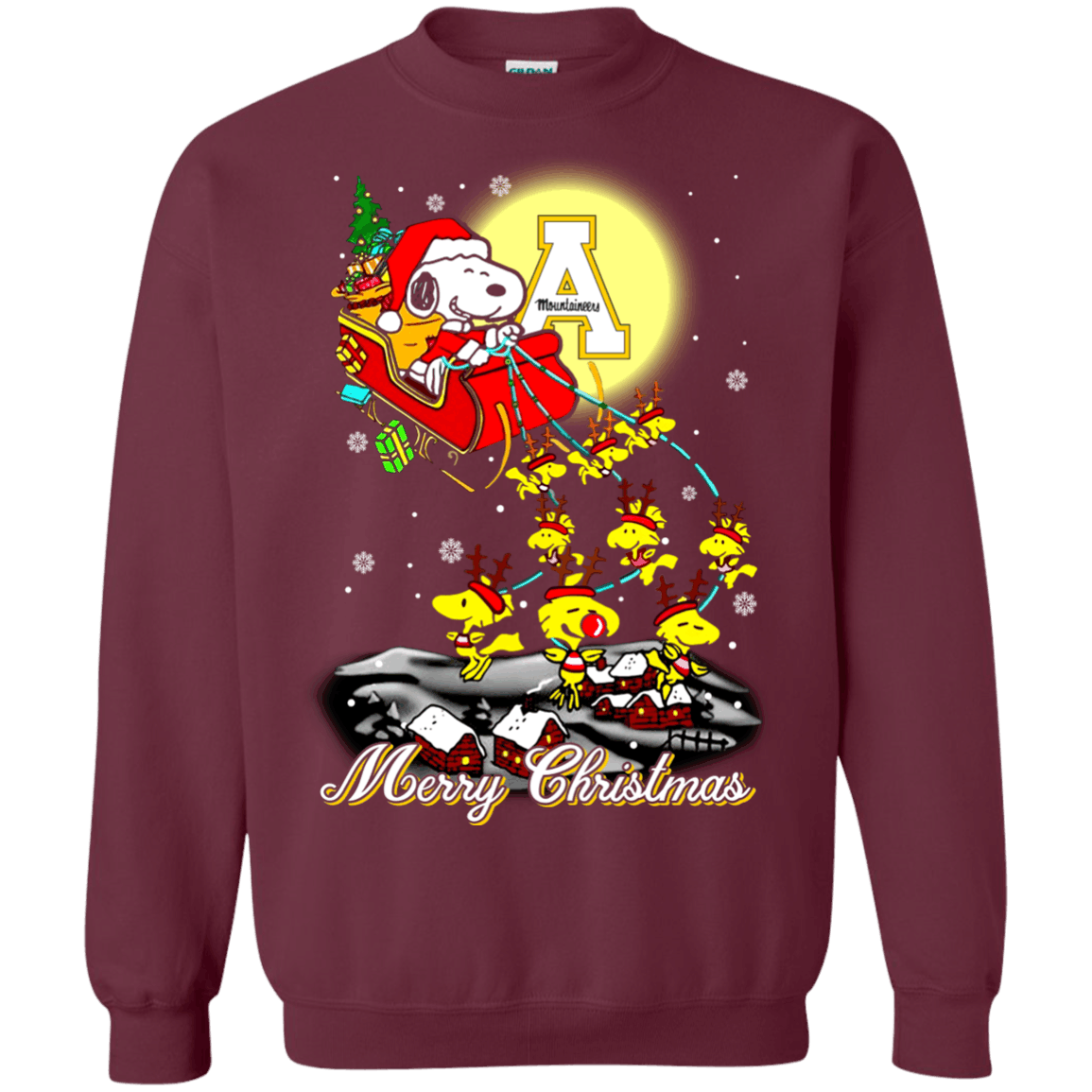 Outstanding Appalachian State Mountaineers Ugly Christmas Sweaters Santa Claus With Sleigh And Snoopy Sweatshirts