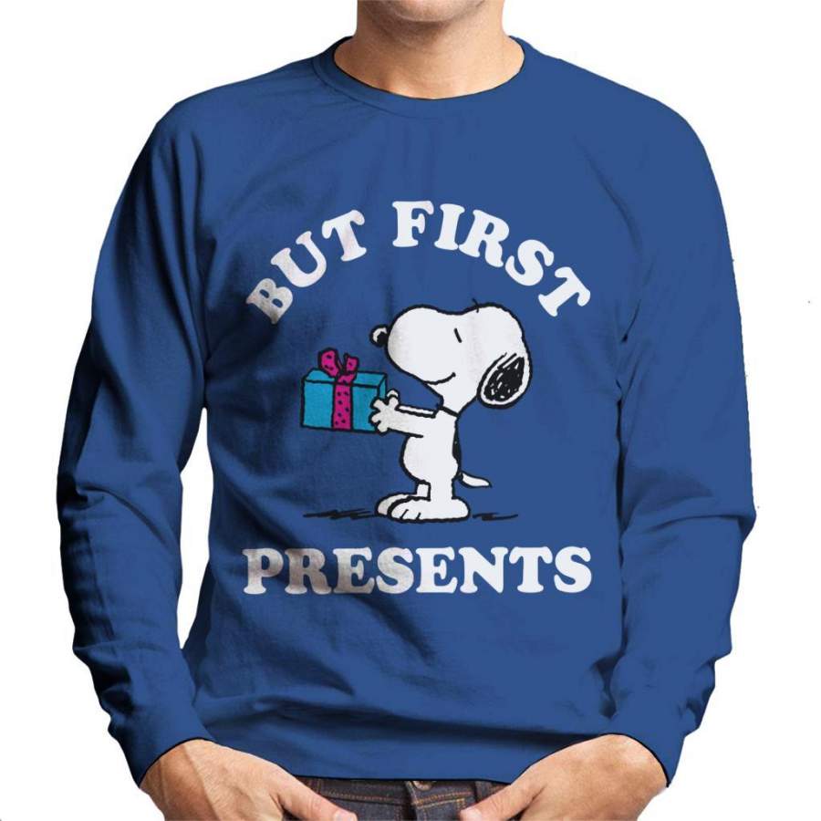 Peanuts Christmas But First Presents Snoopy Men’s Sweatshirt