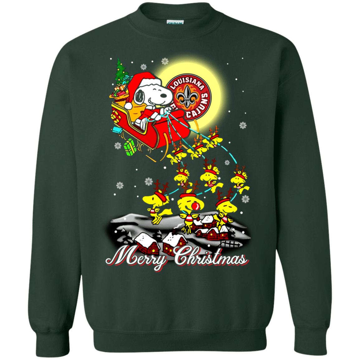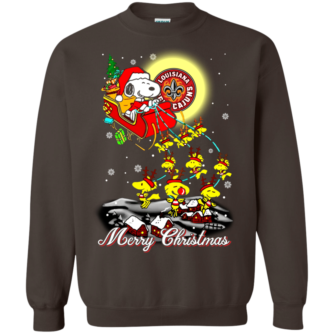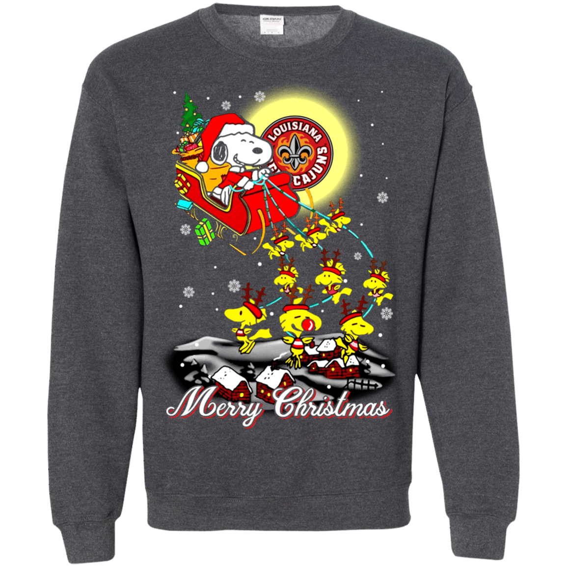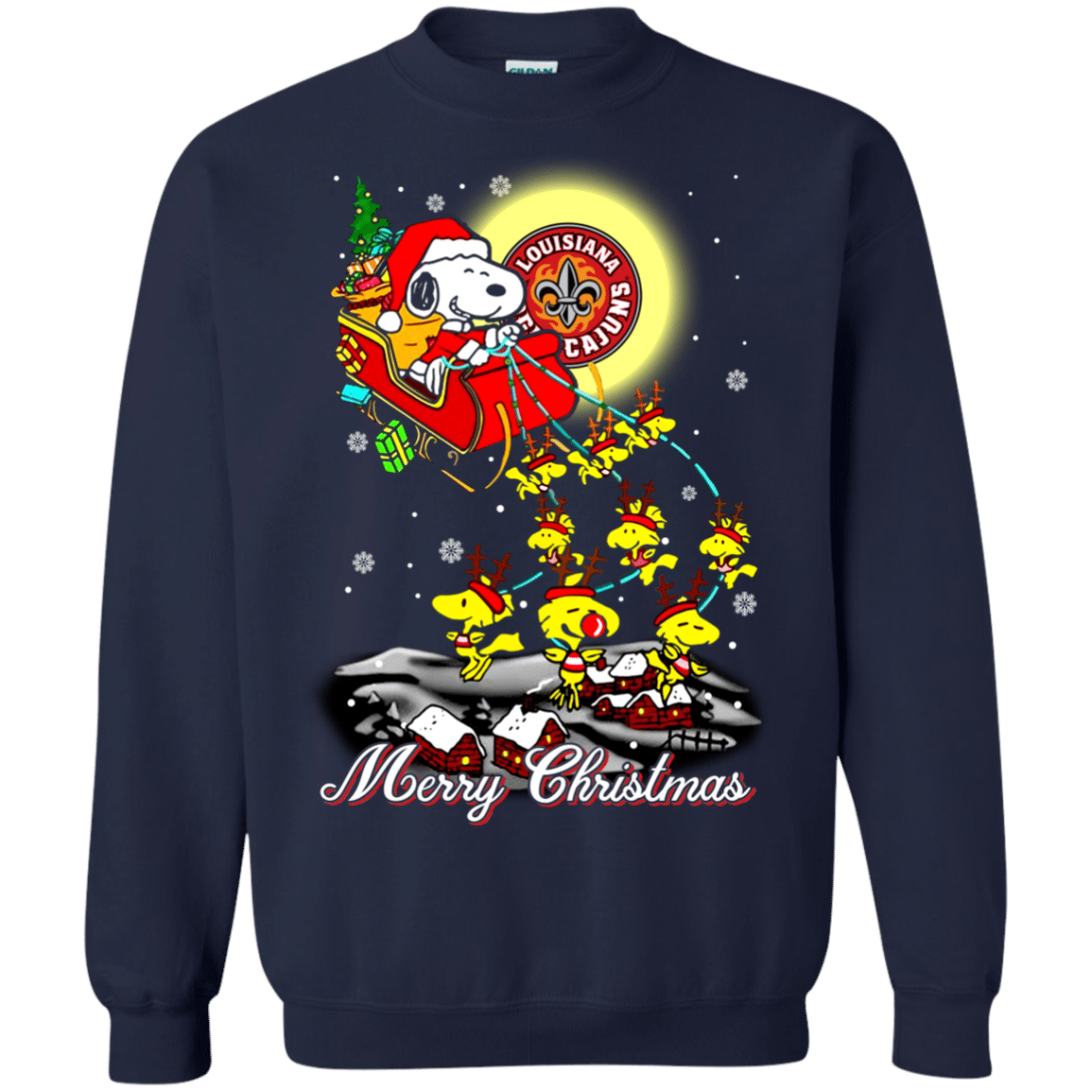 Perfect Louisiana Lafayette Ragin Cajuns Ugly Christmas Sweaters Santa Claus With Sleigh And Snoopy Sweatshirts