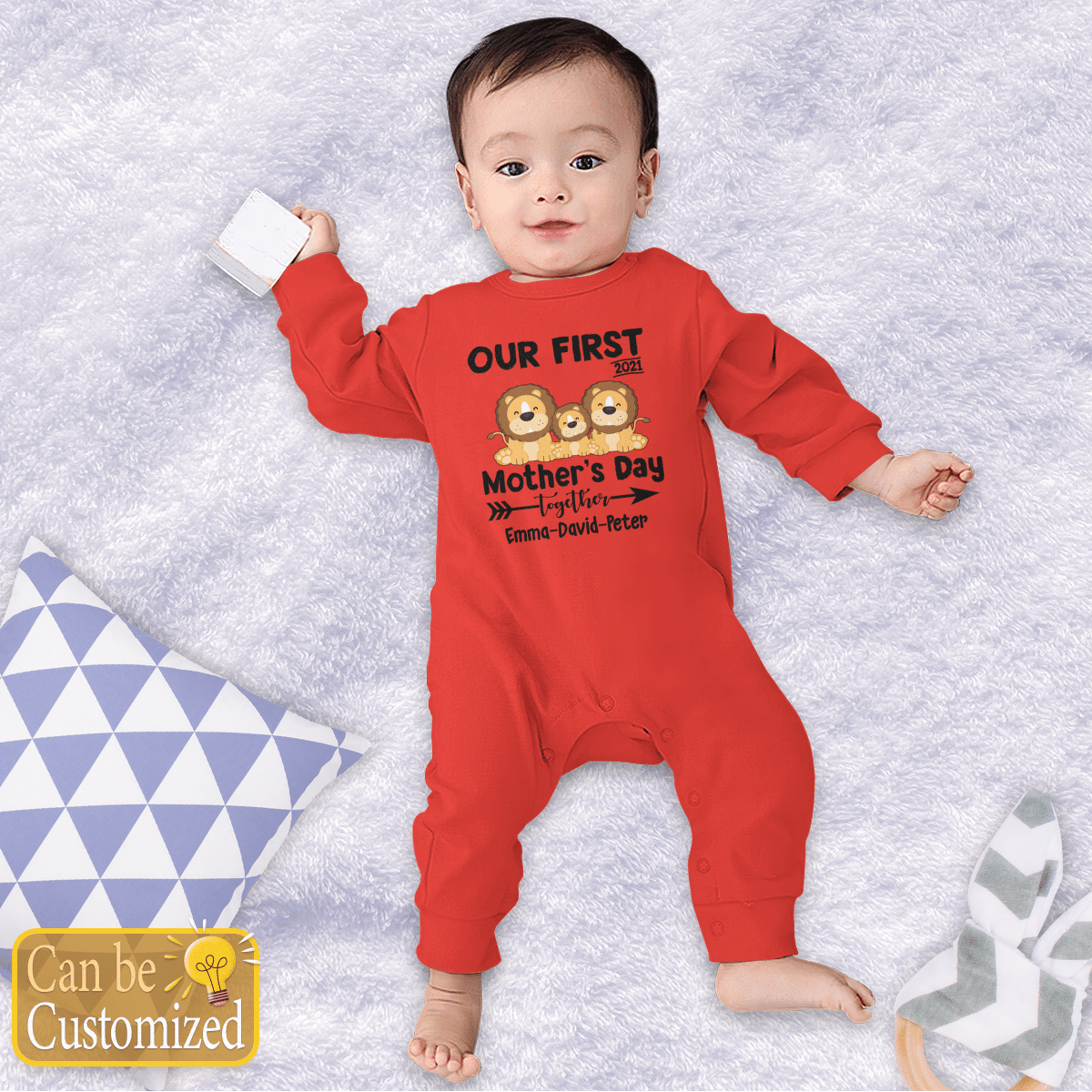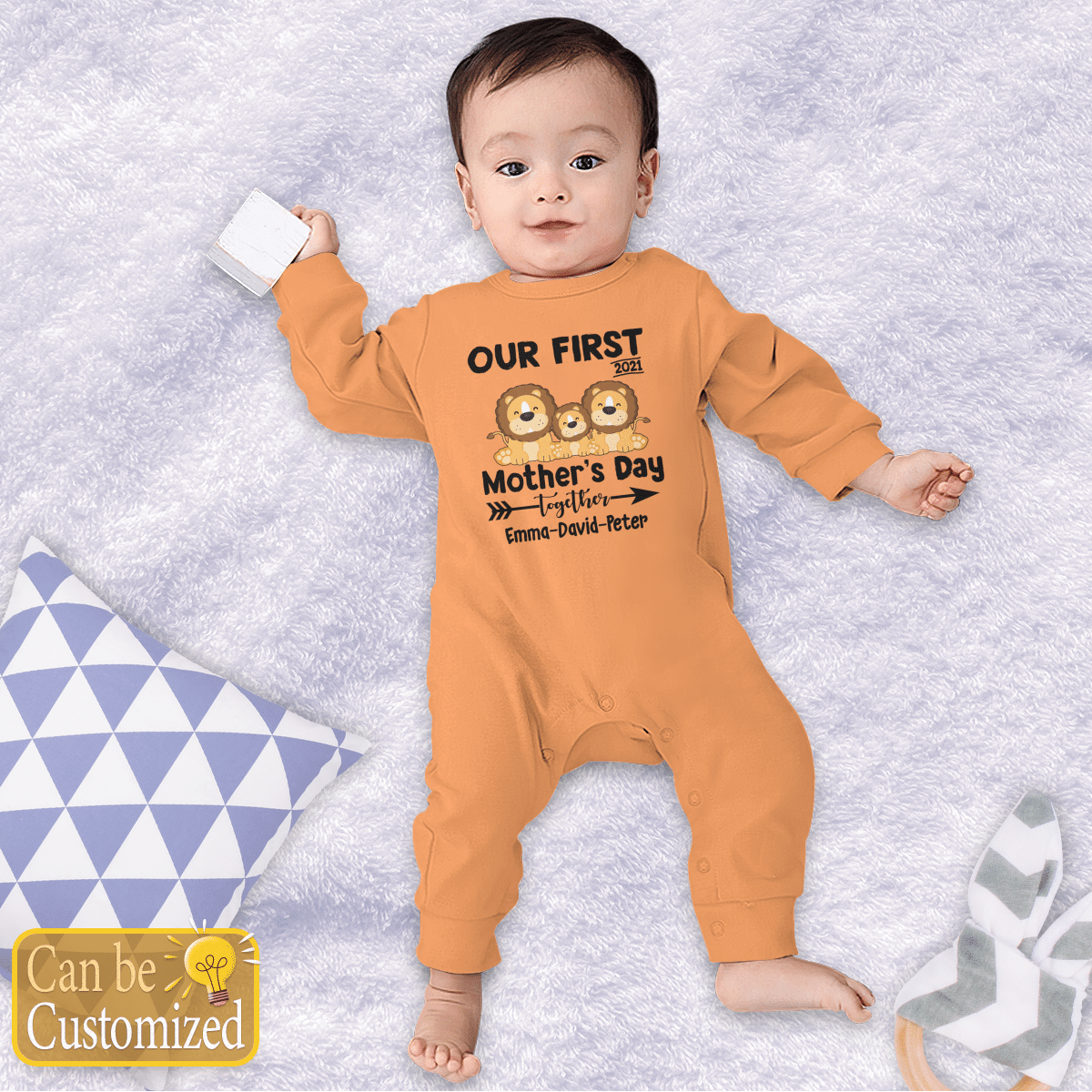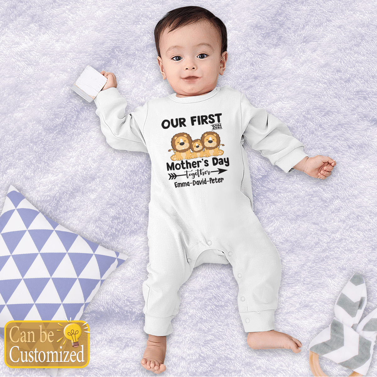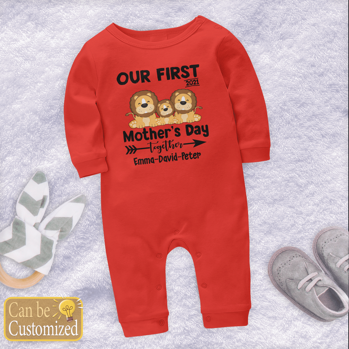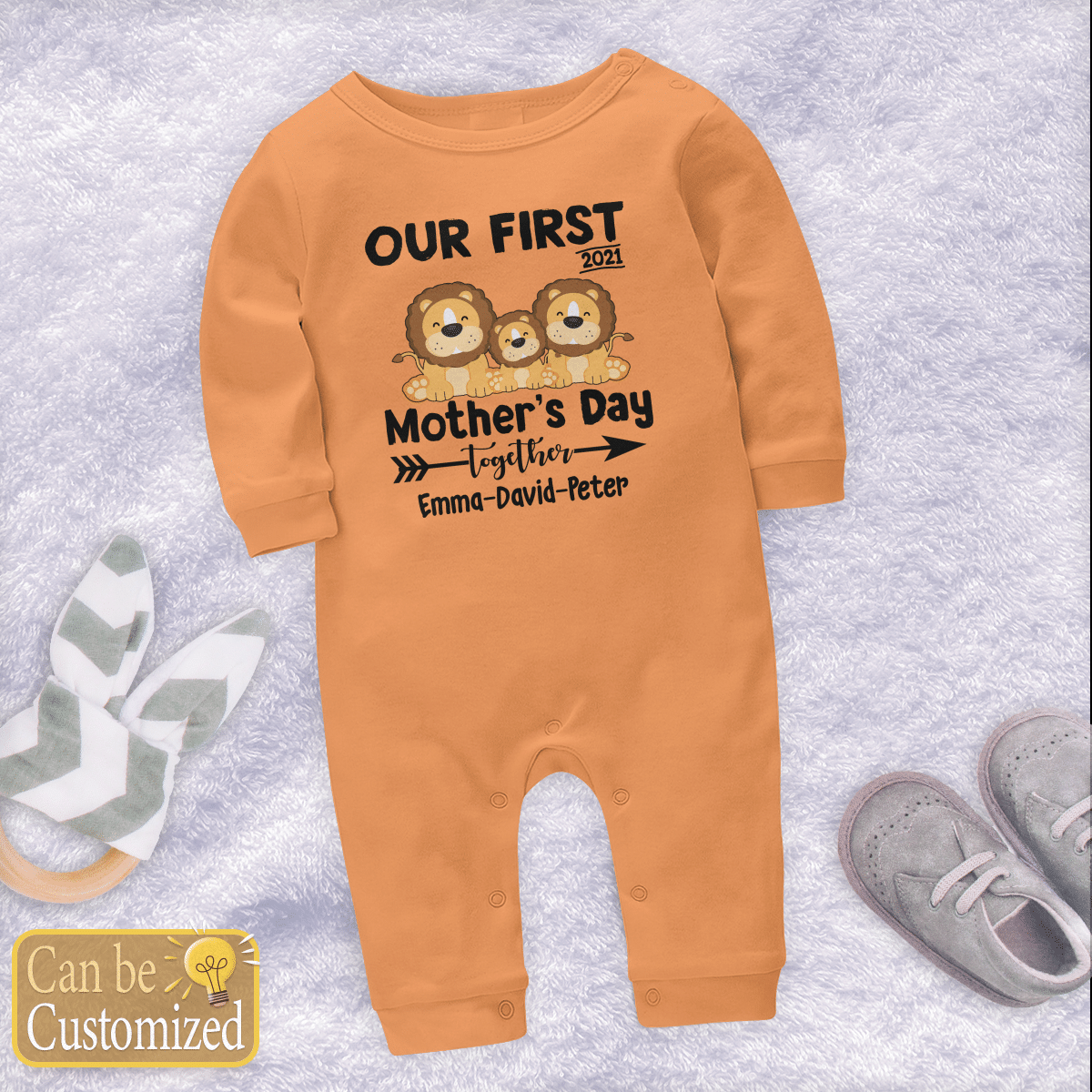 Personalized Our First Mother’s Day Together Lion Long Sleeve Baby One Piece
