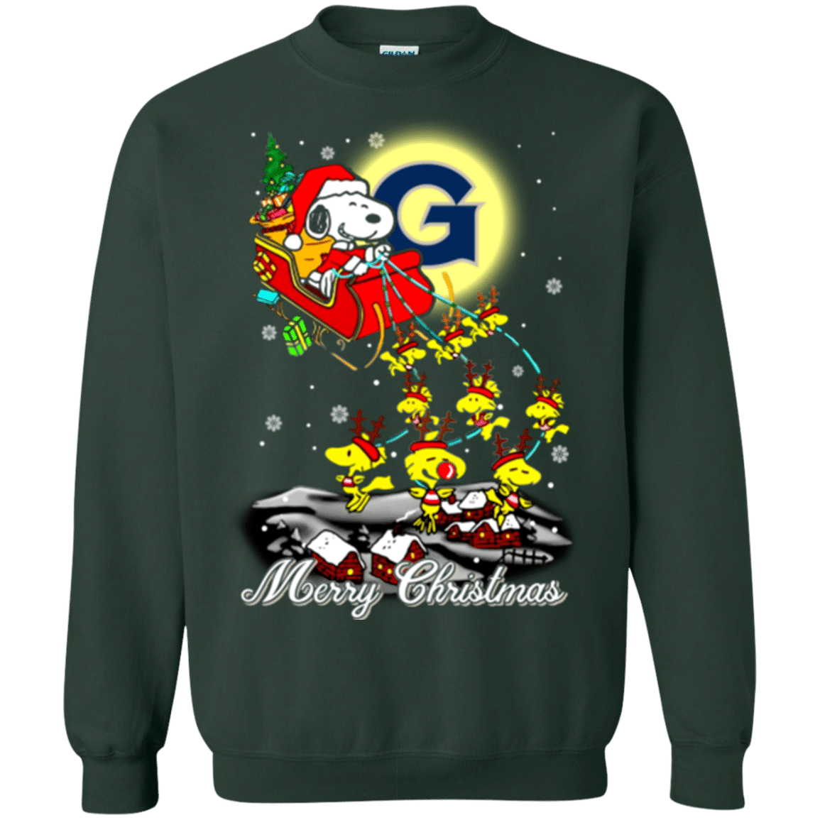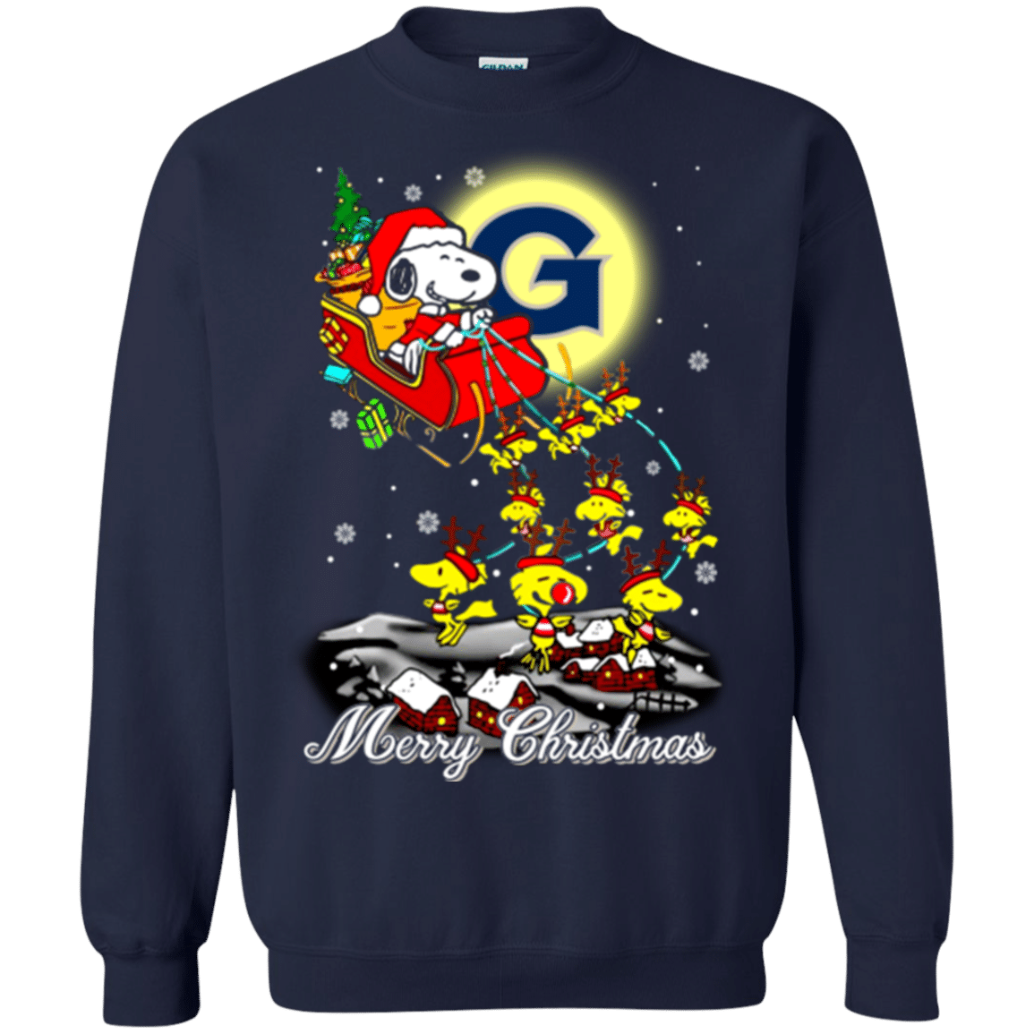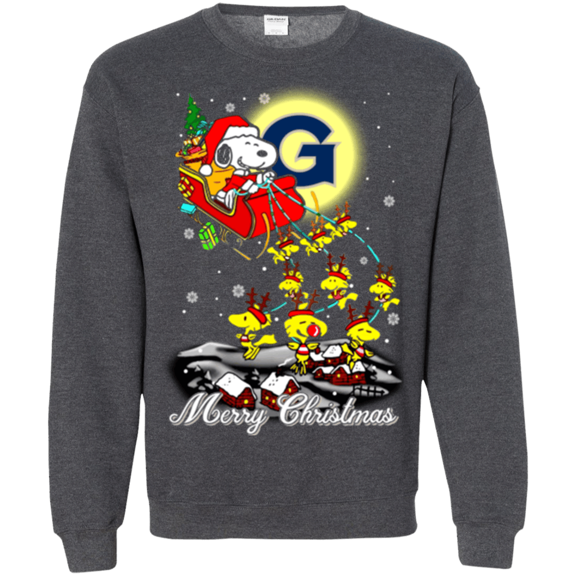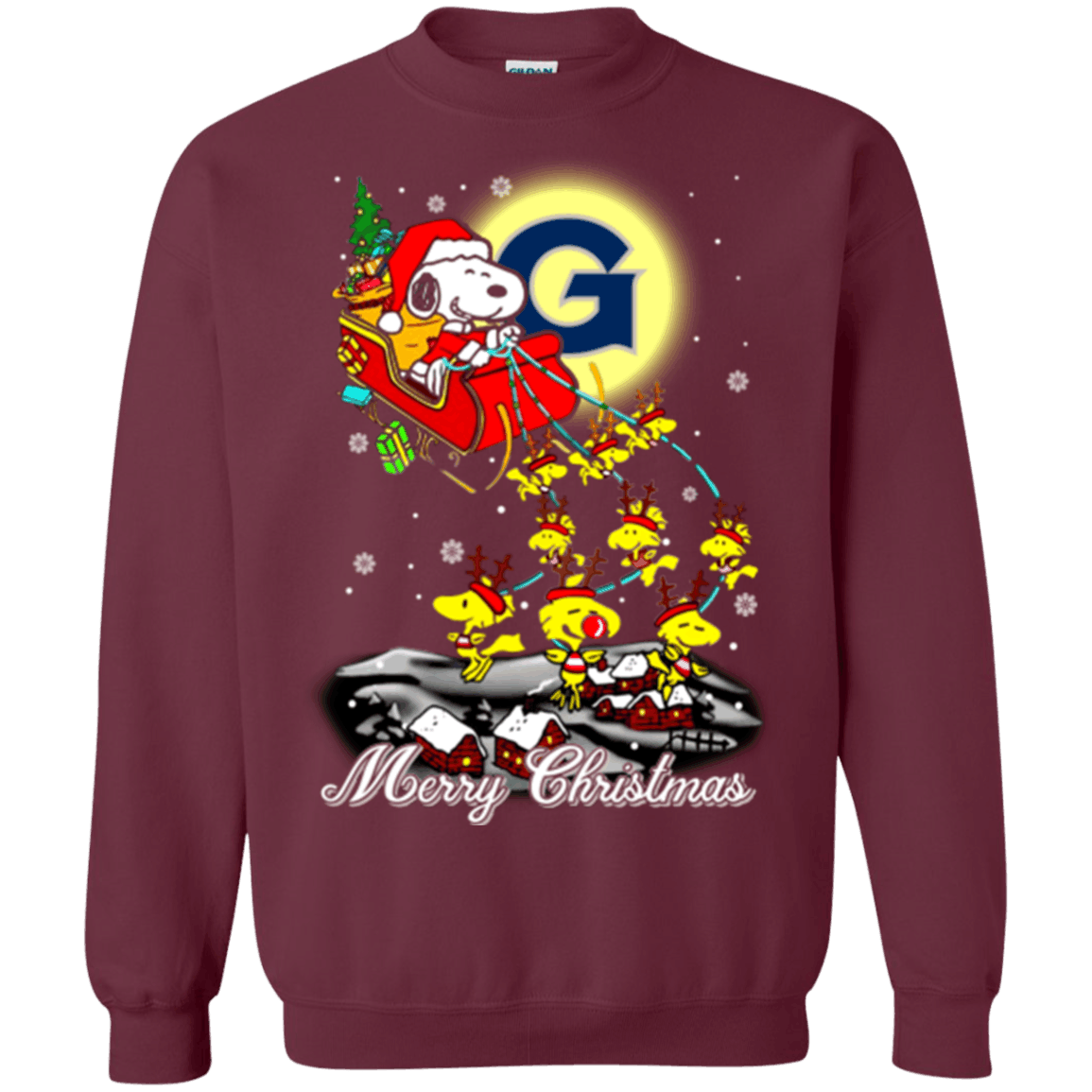 Remarkable Georgetown Hoyas Snoopy Ugly Christmas Sweaters Santa Claus With Sleigh Sweatshirts