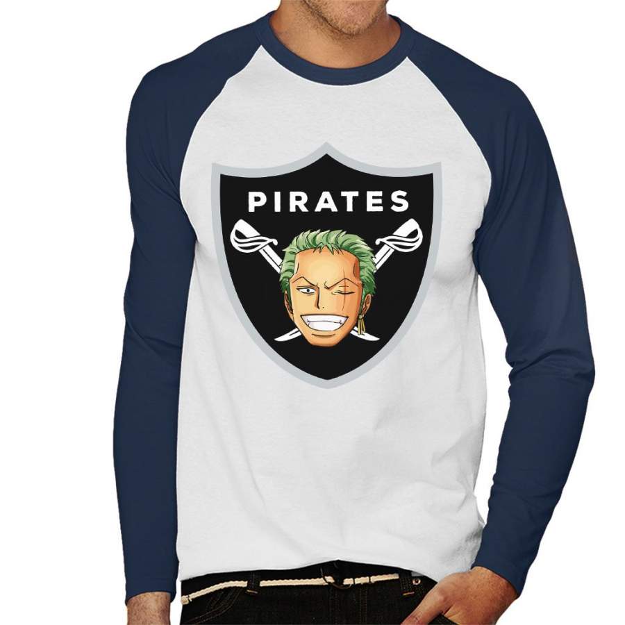 Roronoa Zoro Pirates Raiders Logo One Piece Men’s Baseball Long Sleeved T-shirt