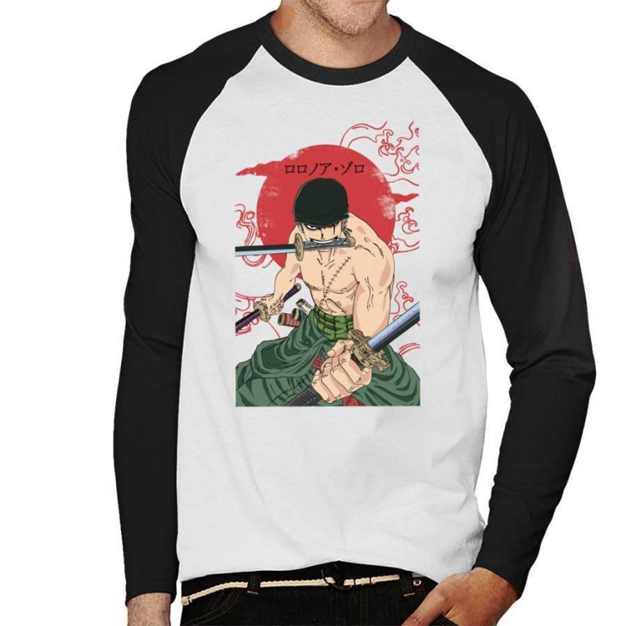 Roronoa Zoro Sun Rise Swords One Piece Men’s Baseball Long Sleeved T-shirt