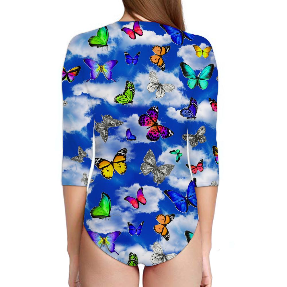 Skull Butterflies Women’S Long Sleeve One Piece Swimsuit Sk-Lsops01-Q207S01