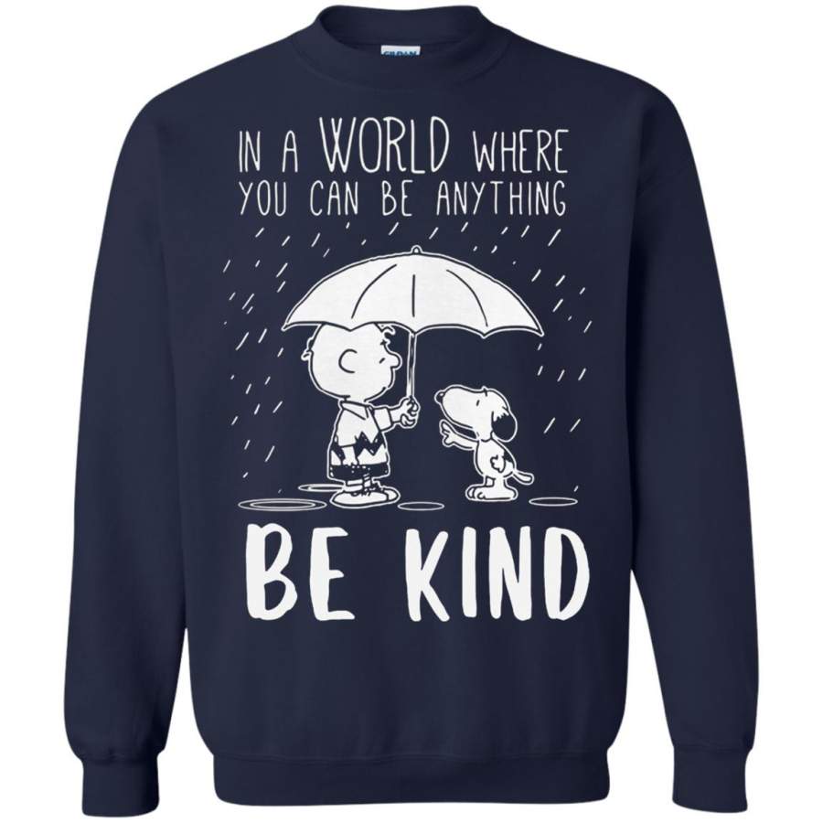 Snoopy and charlie brown in a world where you can be anything be kind Sweatshirt – Moano Store