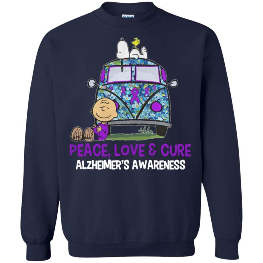 Snoopy and charlie brown peace love and cure alzheimers awareness Sweatshirt – Moano Store