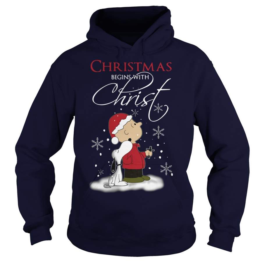 Snoopy and Charlie Christmas begins with Christ – Hoodie