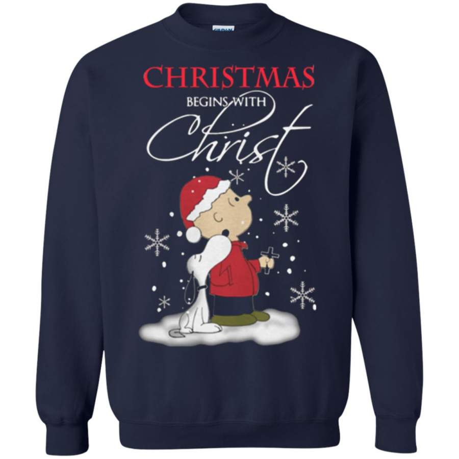 Snoopy and Charlie Christmas begins with christ Sweatshirt – Moano Store