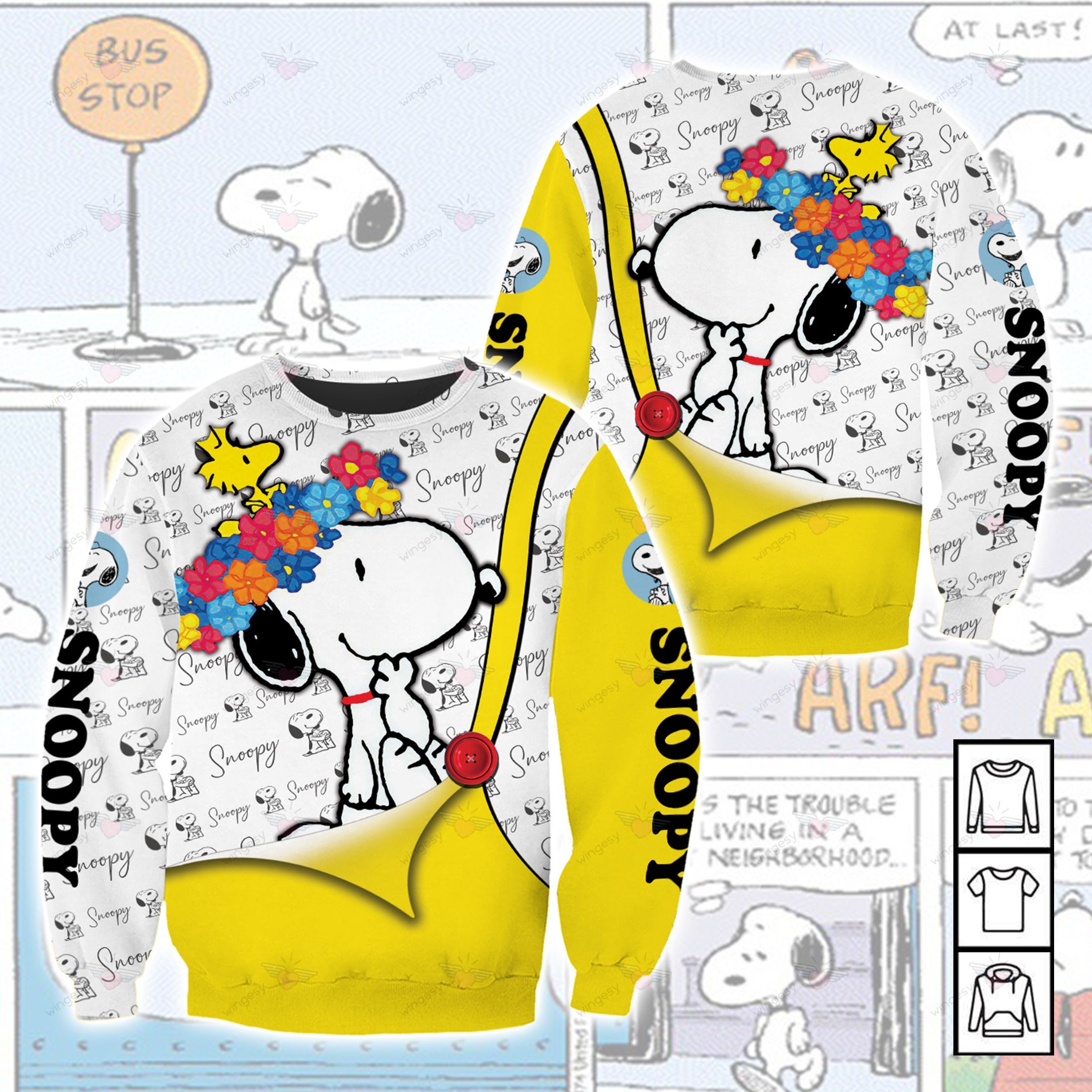 Snoopy Cartoon Snp Button Zip Hoodie Sweater Tshirt A12009010H