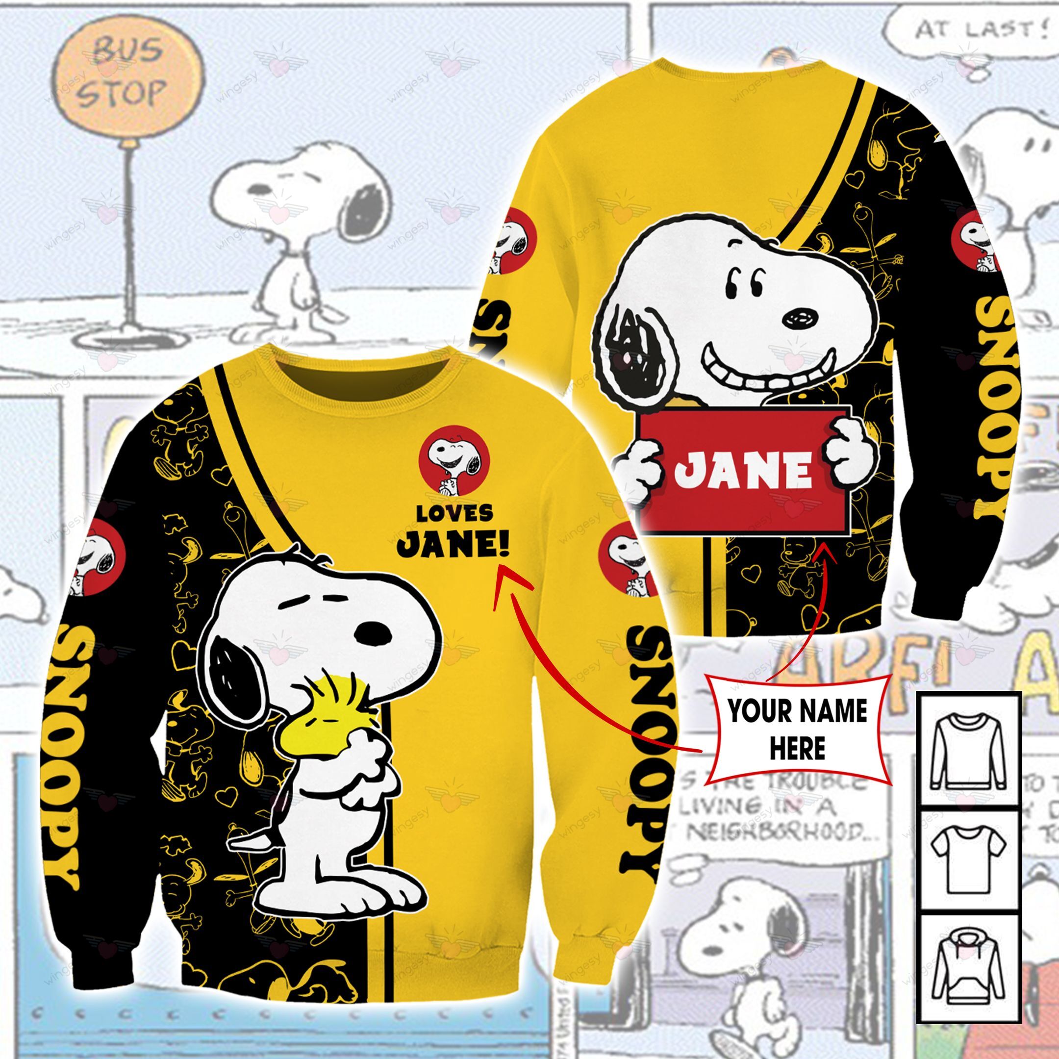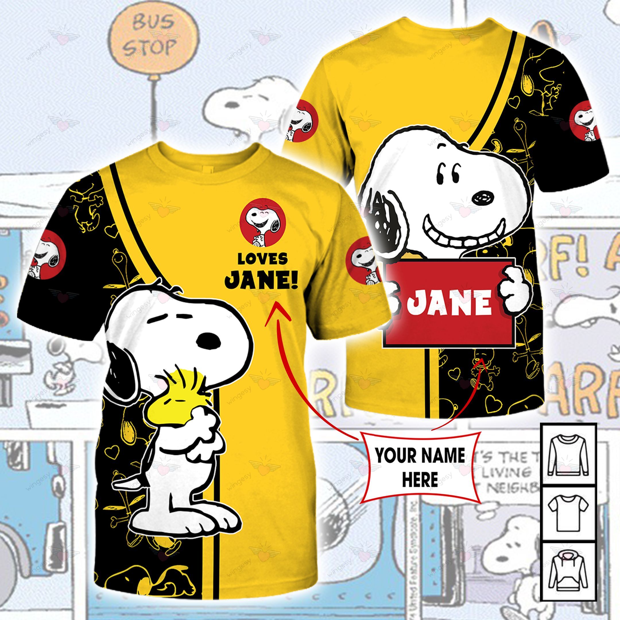 Snoopy Cartoon Snp Loves You Hoodie Sweater Tshirt A12009012H