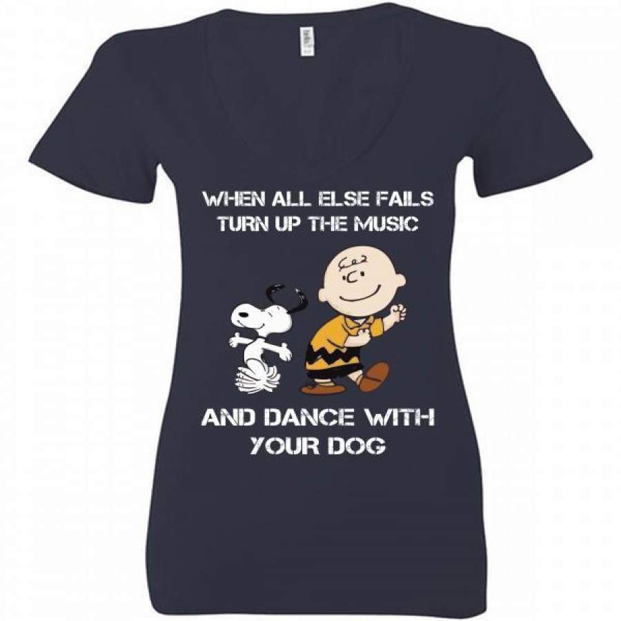 Snoopy Charlie Brown When All Else Fails Turn Up The Music Ladies Deep V-Neck