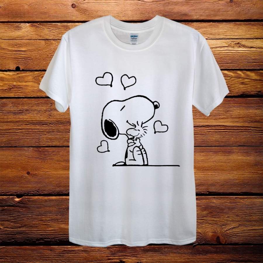 Snoopy Dog Peanuts Love Hug Top T-shirt Mens Short Sleeve Cotton T-shirt Fashion T-shirt Tops Clothing