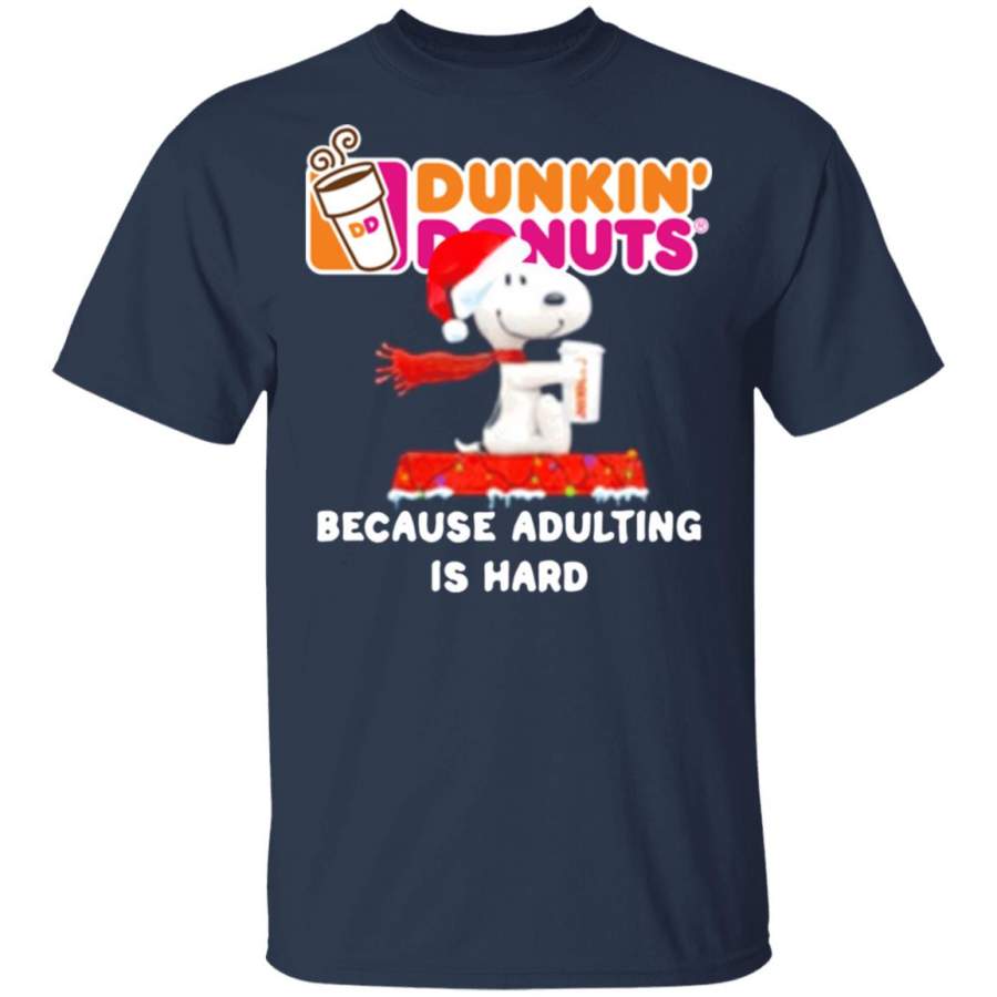 Snoopy Drink Dunkin’ Donuts Because Adulting Is Hard Christmas G500 Gildan 5.3 oz. T-shirt