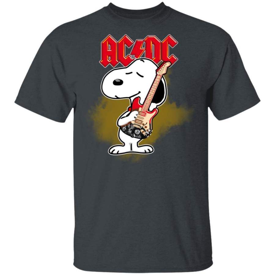 Snoopy Hugging Bass Guitar AC/DC T-shirt Rock Tee MT05