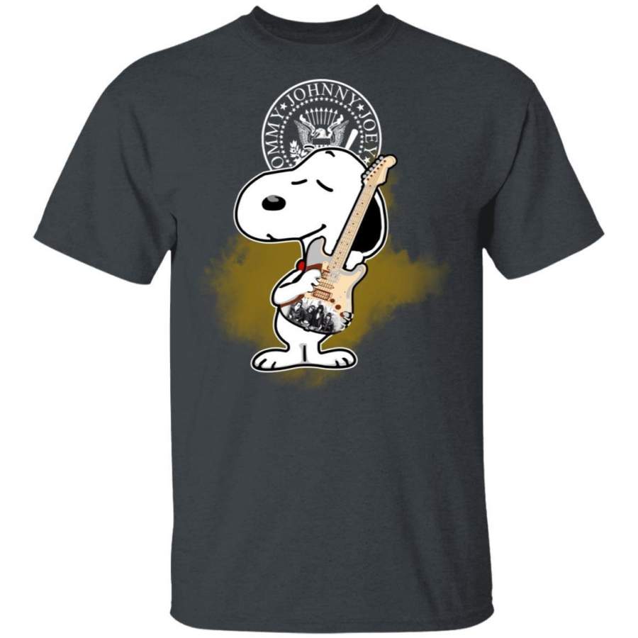 Snoopy Hugging Bass Guitar The Ramones T-shirt Rock Tee MT05