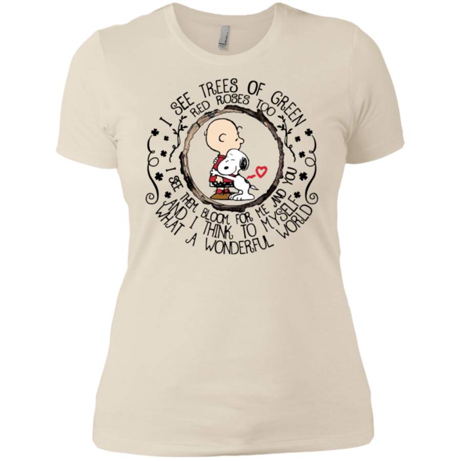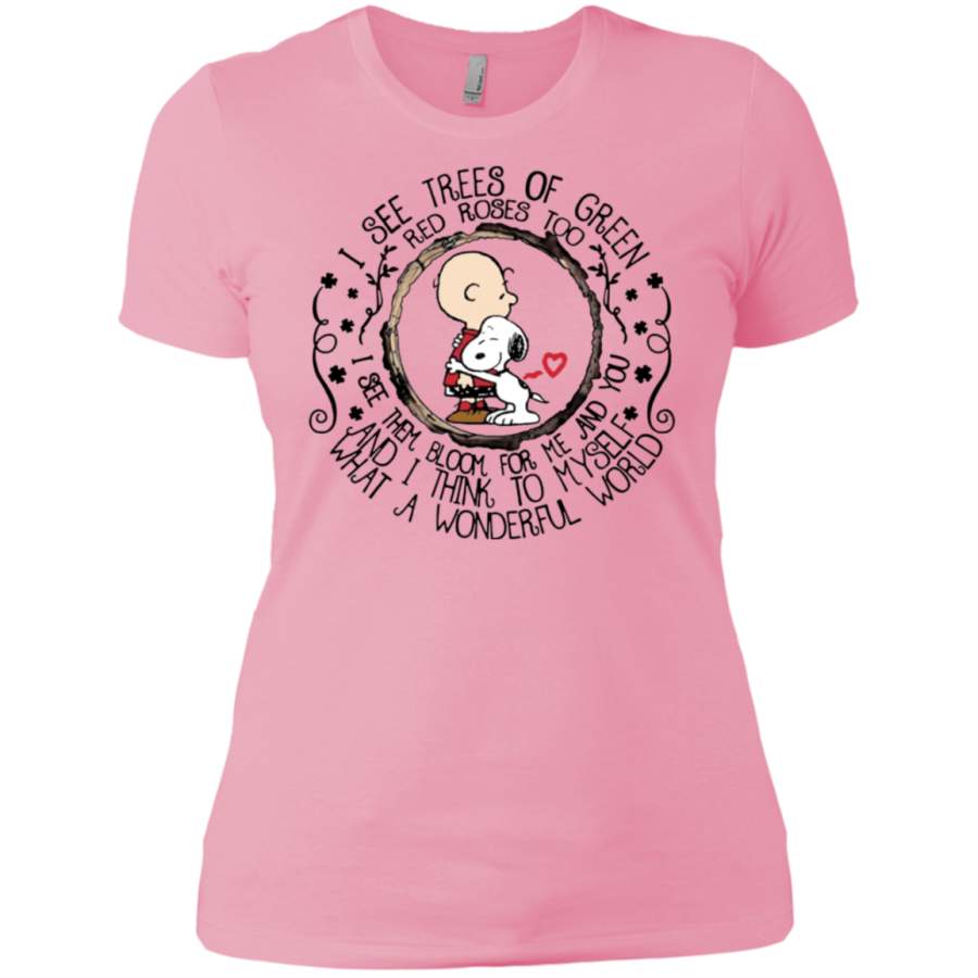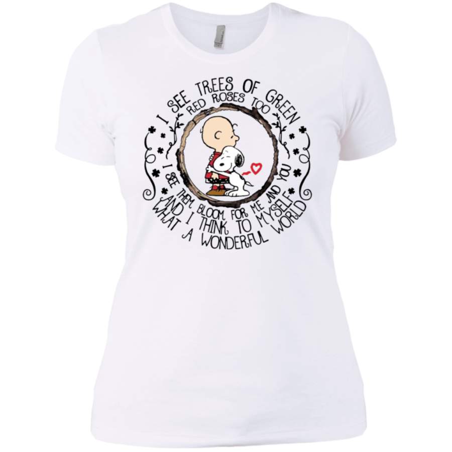 Snoopy I see trees of green red roses too I see them bloom Ladies T-shirt