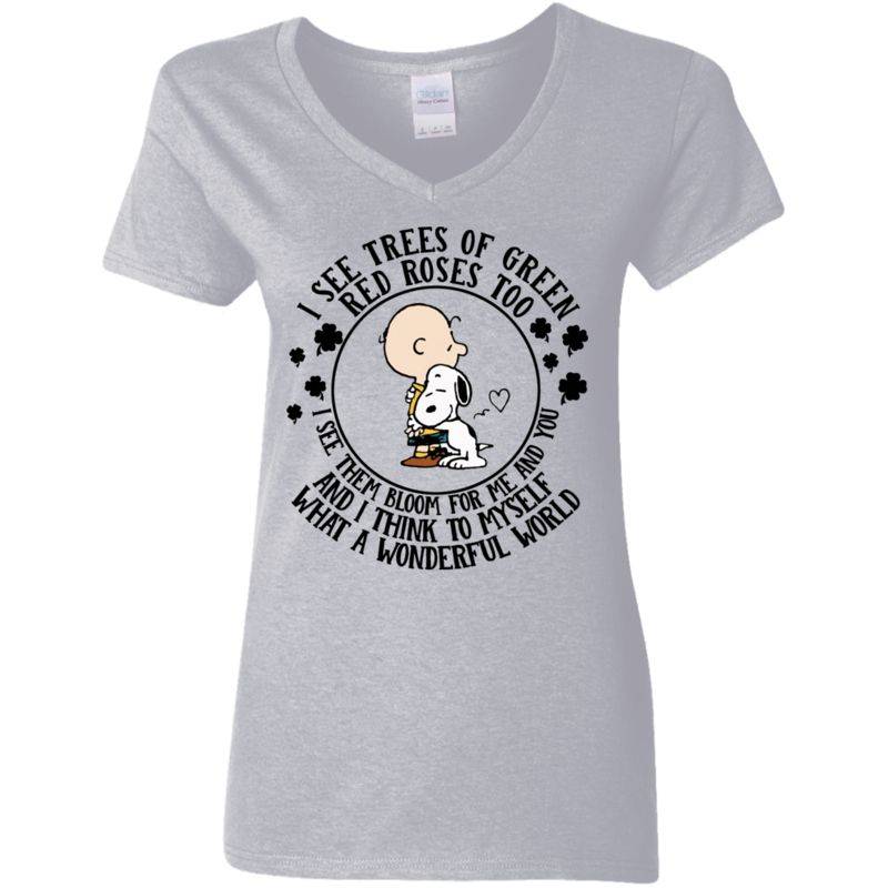 Snoopy I See Trees Of Green Red Roses Too Shirt Ladies V-neck