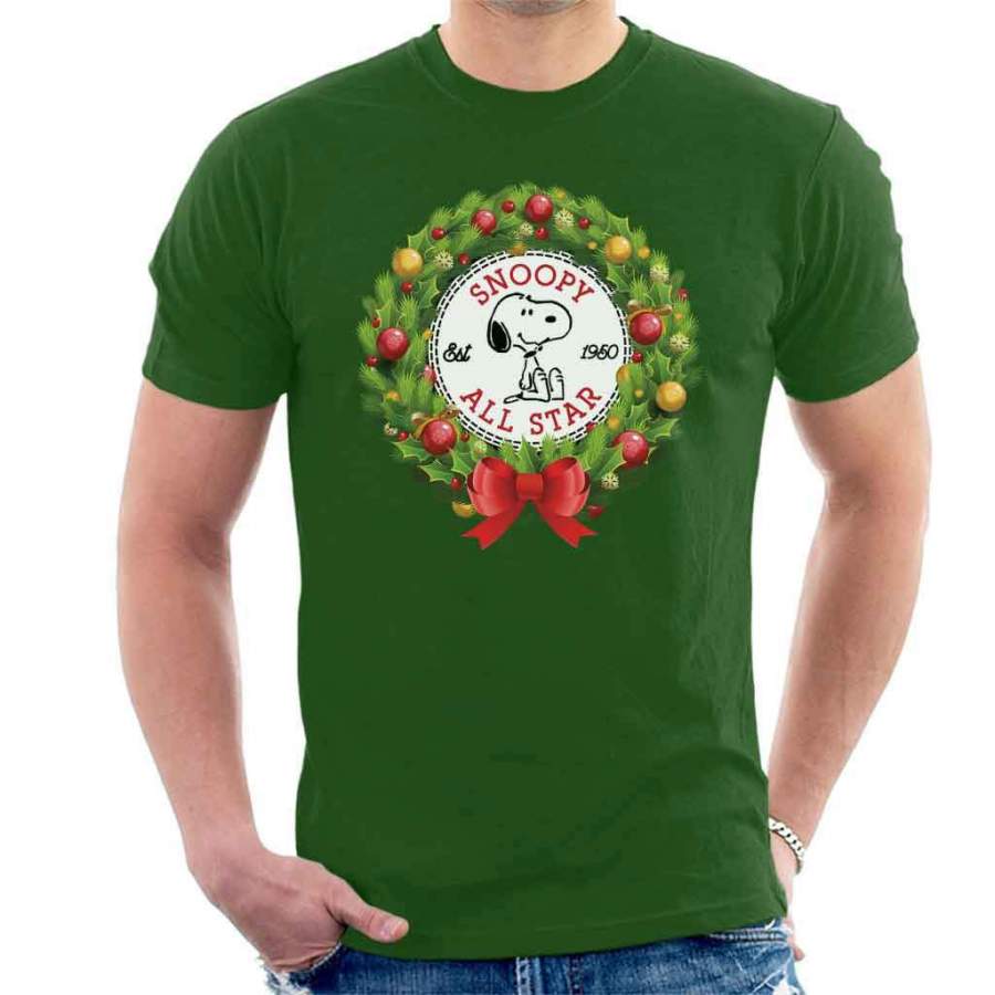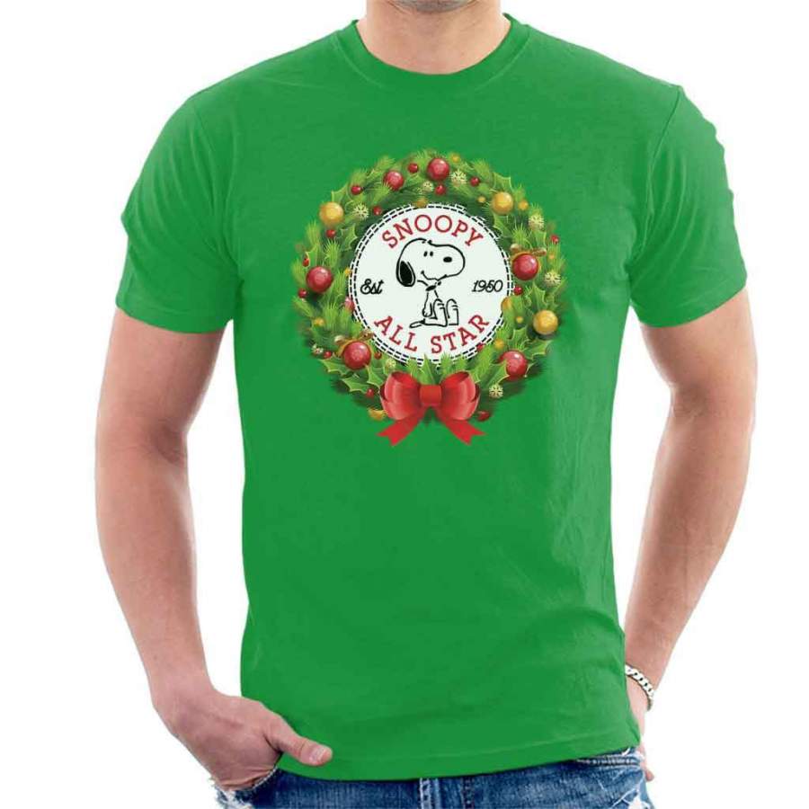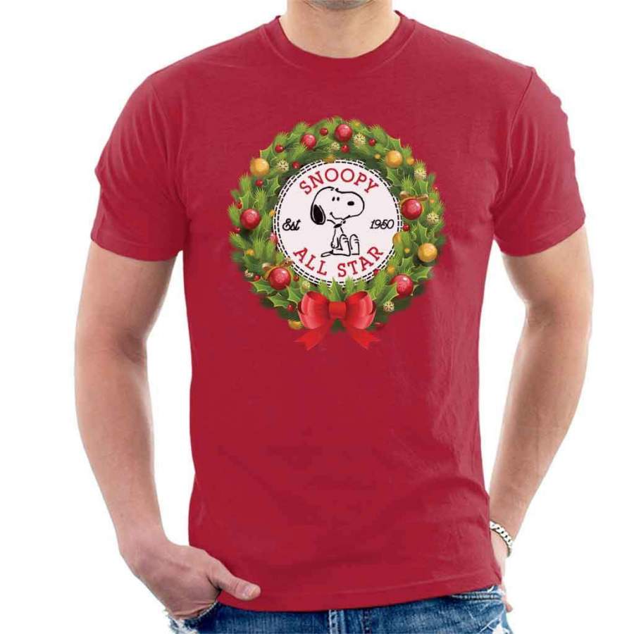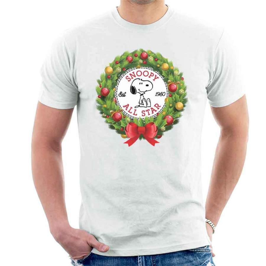 Snoopy Peanuts Christmas Wreath All Star Converse Logo Men’s T-shirt