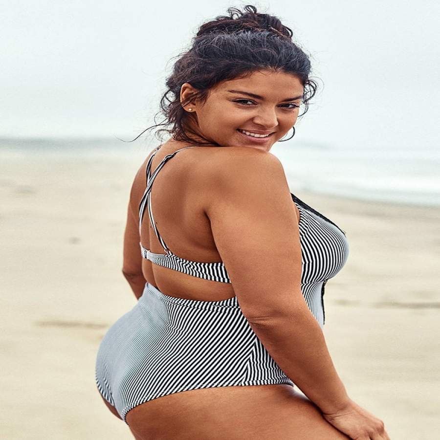 Stripy V-Neck Plus Size One Piece Swimsuit