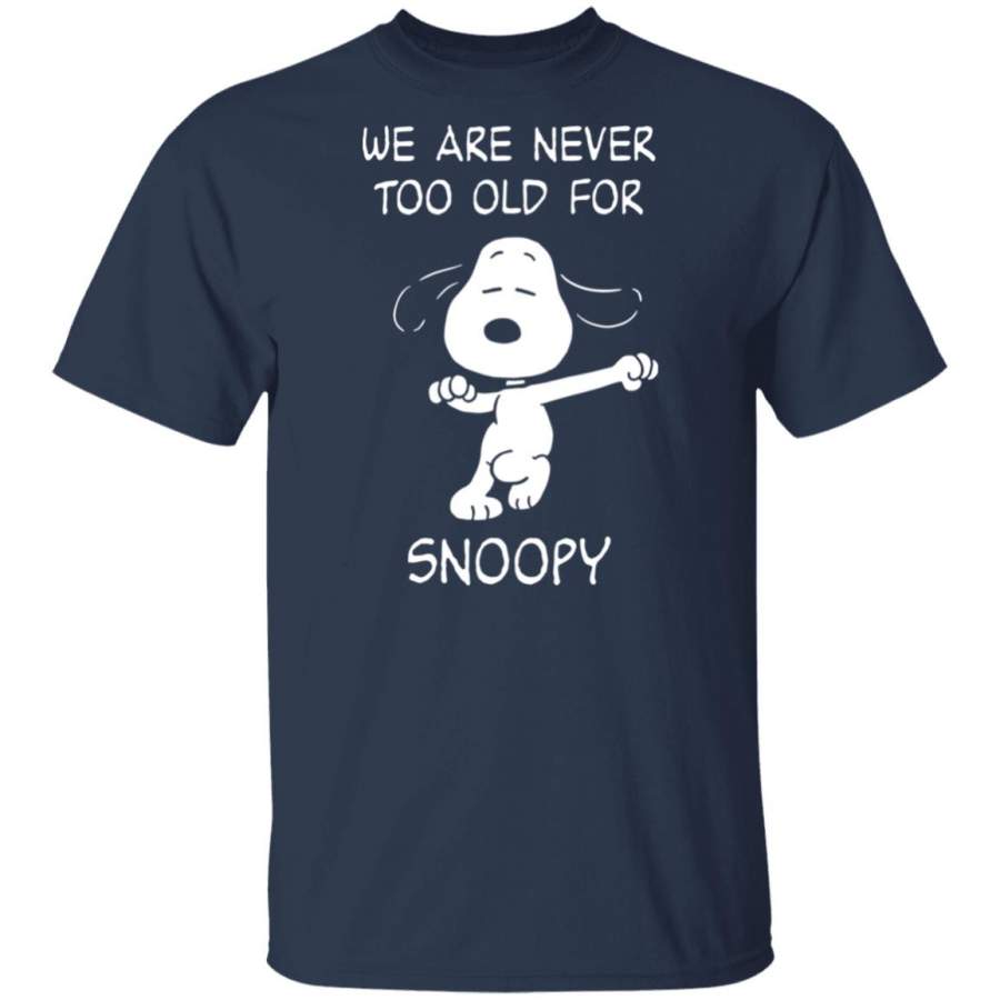We are never too old for Snoopy G500 Gildan 5.3 oz. T-shirt