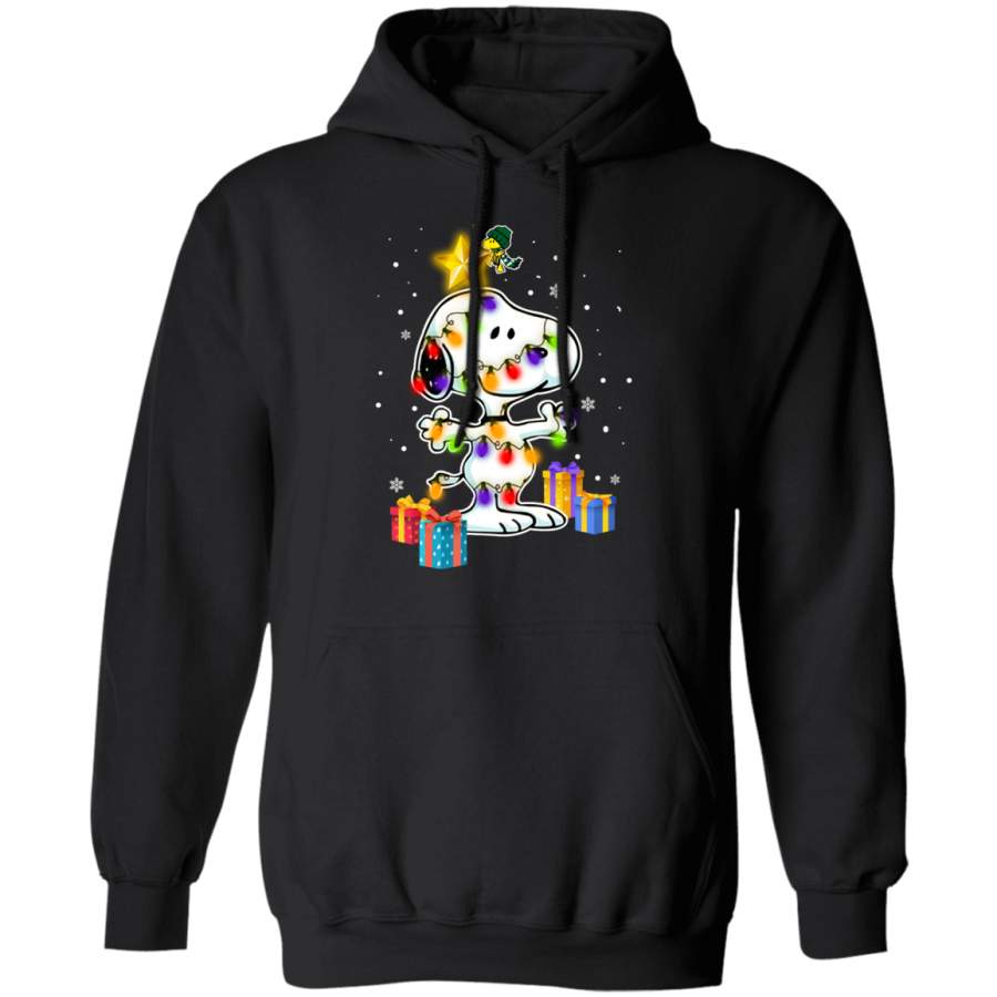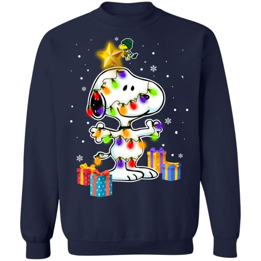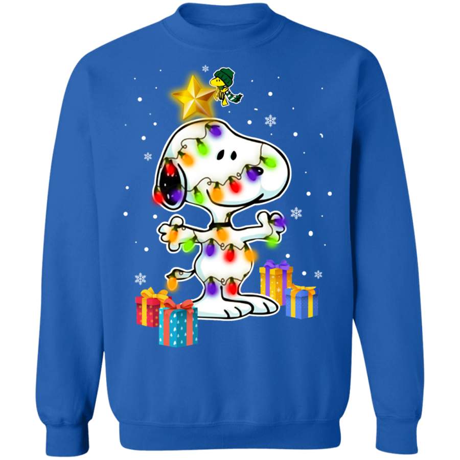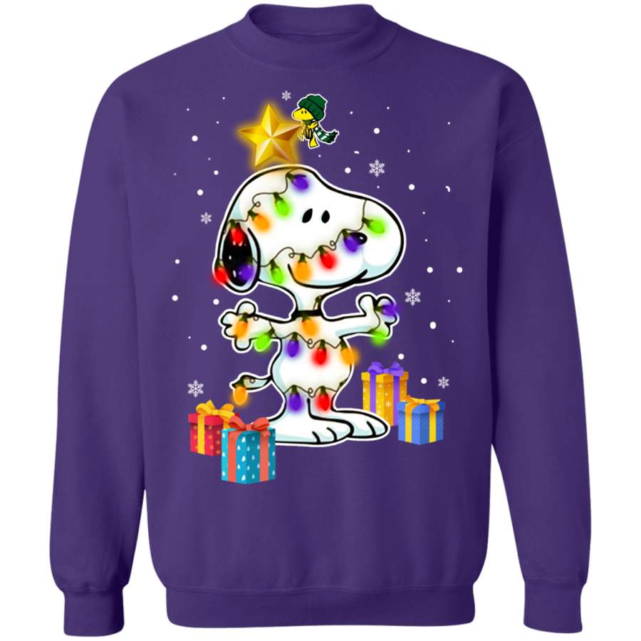 Woodstock Decorates Snoopy With Christmas Lights Sweatshirt