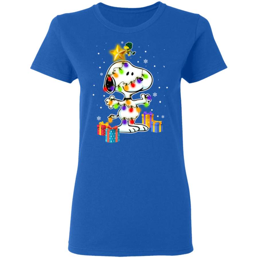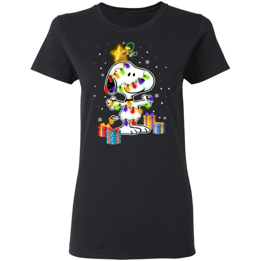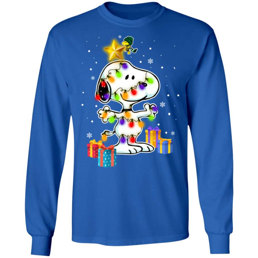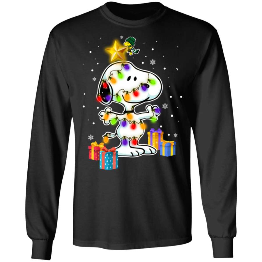 Woodstock Decorates Snoopy With Christmas Lights Sweatshirt
